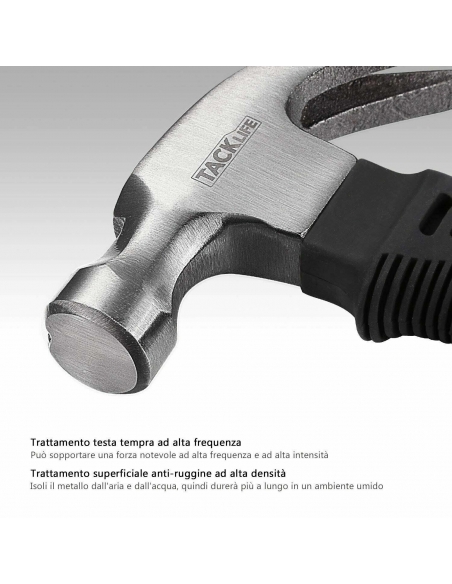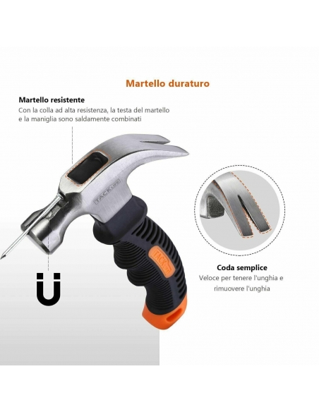 FACILE DA IMPUGNARE E TENERE IN MANO - IMPUGNATURA IN GOMMA MORBIDA ANTISCIVOLO PER UNA PRESA COMODA E MINORE AFFATICAMENTO; RISPETTO AD UN MARTELLO GRANDE, IL NOSTRO MINI MARTELLO È ESTREMAMENTE COMPATTO PER ADATTARSI PERFETTAMENTE ALLA MANO, PERFETTO PER L'UTILIZZO IN SPAZI RISTRETTI.