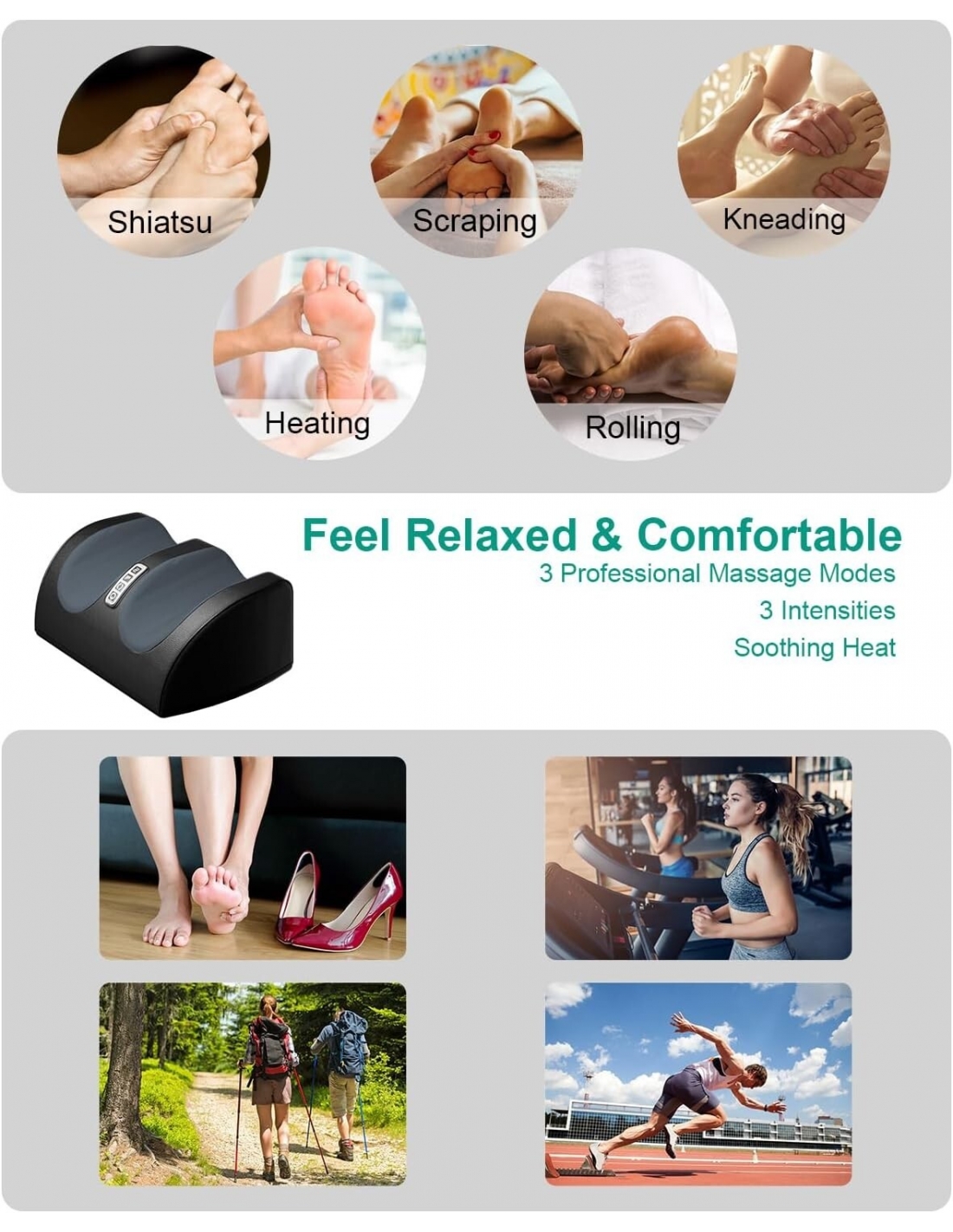 - TERAPIA DI MASSAGGIO CALDO: Il massaggiatore per i piedi è dotato di un sistema di riscaldamento. Il tradizionale massaggio termico può alleviare efficacemente la fascite plantare e il dolore artritico. Migliora la circolazione sanguigna nelle gambe, aumenta la flessibilità muscolare e favorisce la salute generale. Massaggia i piedi dopo una lunga giornata di lavoro per alleviare lo stress e favorire il sonno.