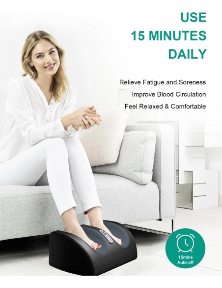 - SILENZIOSO E CONFORTEVOLE: il massaggiatore per piedi è dotato di un motore antirumore con un rumore di funzionamento di 35-55 decibel, per un'esperienza di massaggio silenziosa e confortevole. Il timer automatico si spegne automaticamente dopo 15 minuti di utilizzo, evitando il fastidio ai muscoli delle gambe causato da un uso prolungato.