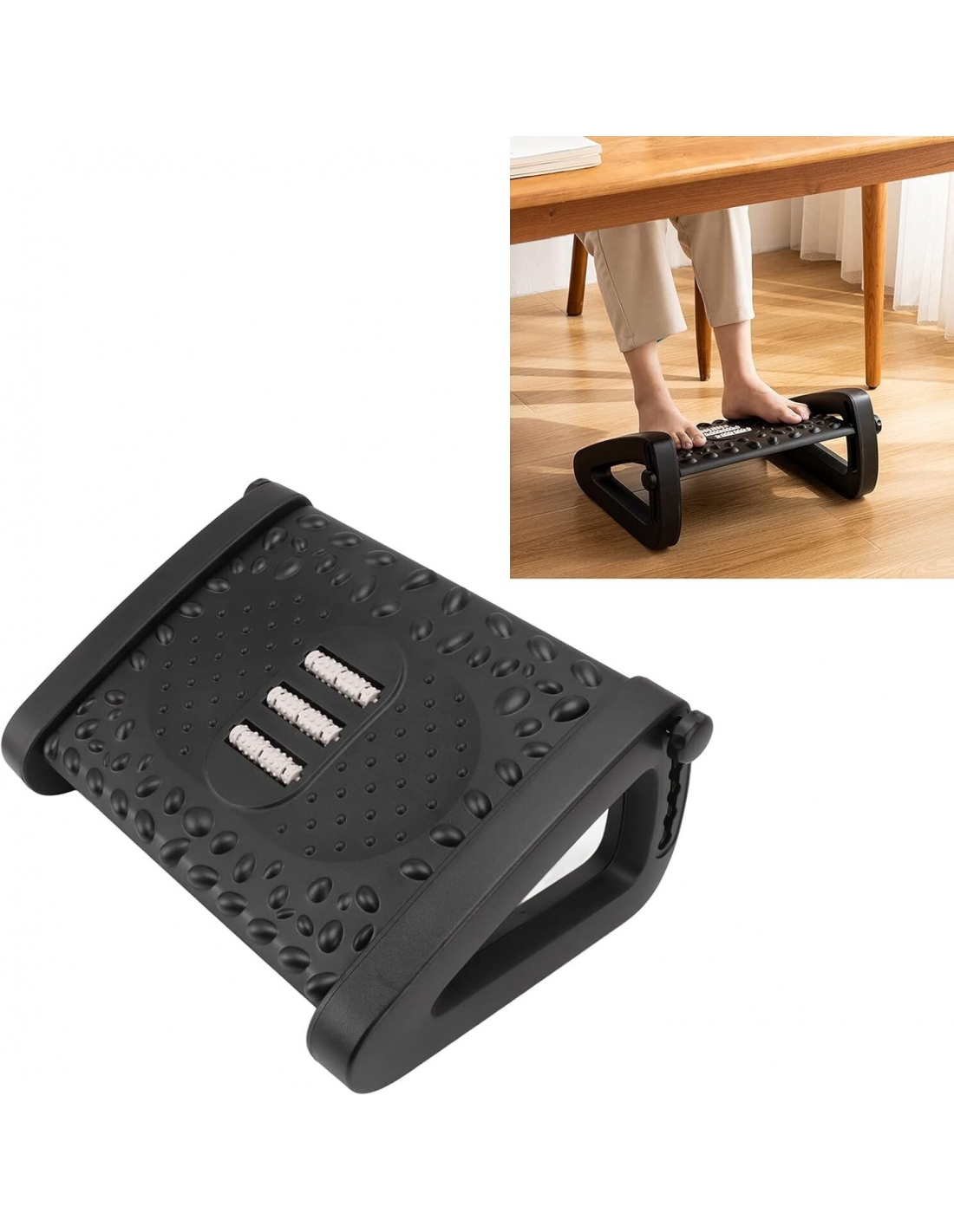 Poggiapiedi Sotto la Scrivania Poggiapiedi Ergonomico Regolabile in Altezza a 6 Altezze con Struttura Massaggiante e Rullo per Ufficio