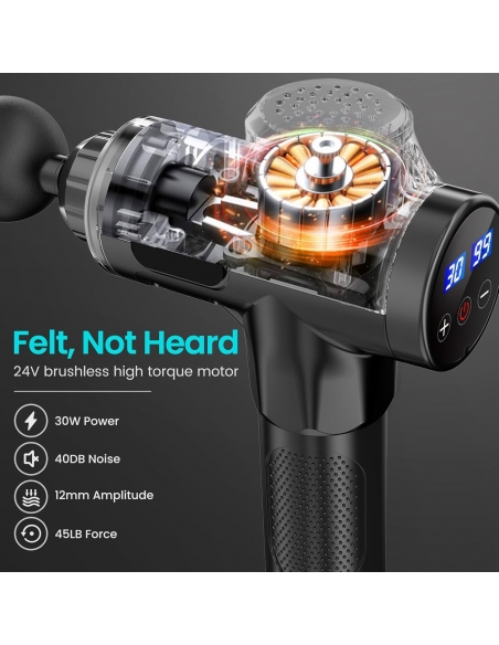 MG5 Pistola Massaggio Muscolare, 30 Velocità, 2500mAh Batteria Ricaricabile, 3300RPM Silenziosa Massaggiatore Elettrico, 10 Testine, Schermo Tattile LCD