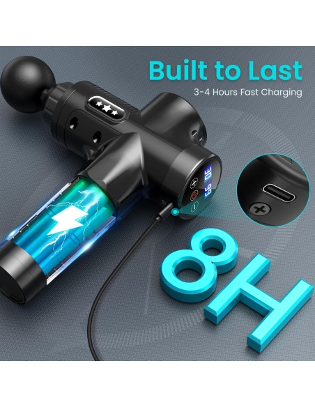 - 【💪Maggior Durata Della Batteria】: Grazie alla batteria da 2600mAh ricaricabile puoi usa la pistola massaggio per 7-8H ore con una singola carica. È progettato con un'impostazione di spegnimento automatico di 15 minuti per evitare il surriscaldamento e prolungare la durata della batteria. Servizio clienti rapido e facile da raggiungere e 24 ore supporto per la tua tranquillità.