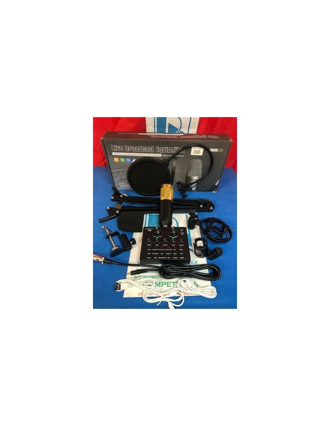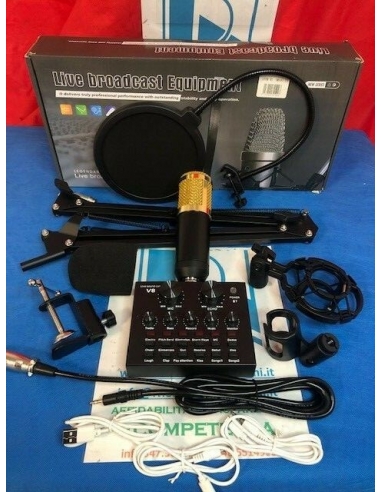 Questo prodotto include una scheda audio live e un microfono a condensatore professionale. La scheda audio live multifunzionale ha 12 tipi di suoni elettronici e 12 tipi di effetti sonori, che supporta il doppio uso mobile. Il microfono adotta l'esatto controllo completo del circuito elettronico e la capsula a membrana placcata in oro. Con un modello di pickup polare cardioide, ad alto rendimento, a basso rumore personale, il microfono ¨¨ adatto soprattutto per la registrazione, le stazioni di trasmissione, le esibizioni sul palco e il computer. Pu¨° soddisfare i requisiti di alta qualit¨¤ per la trasmissione e la registrazione.