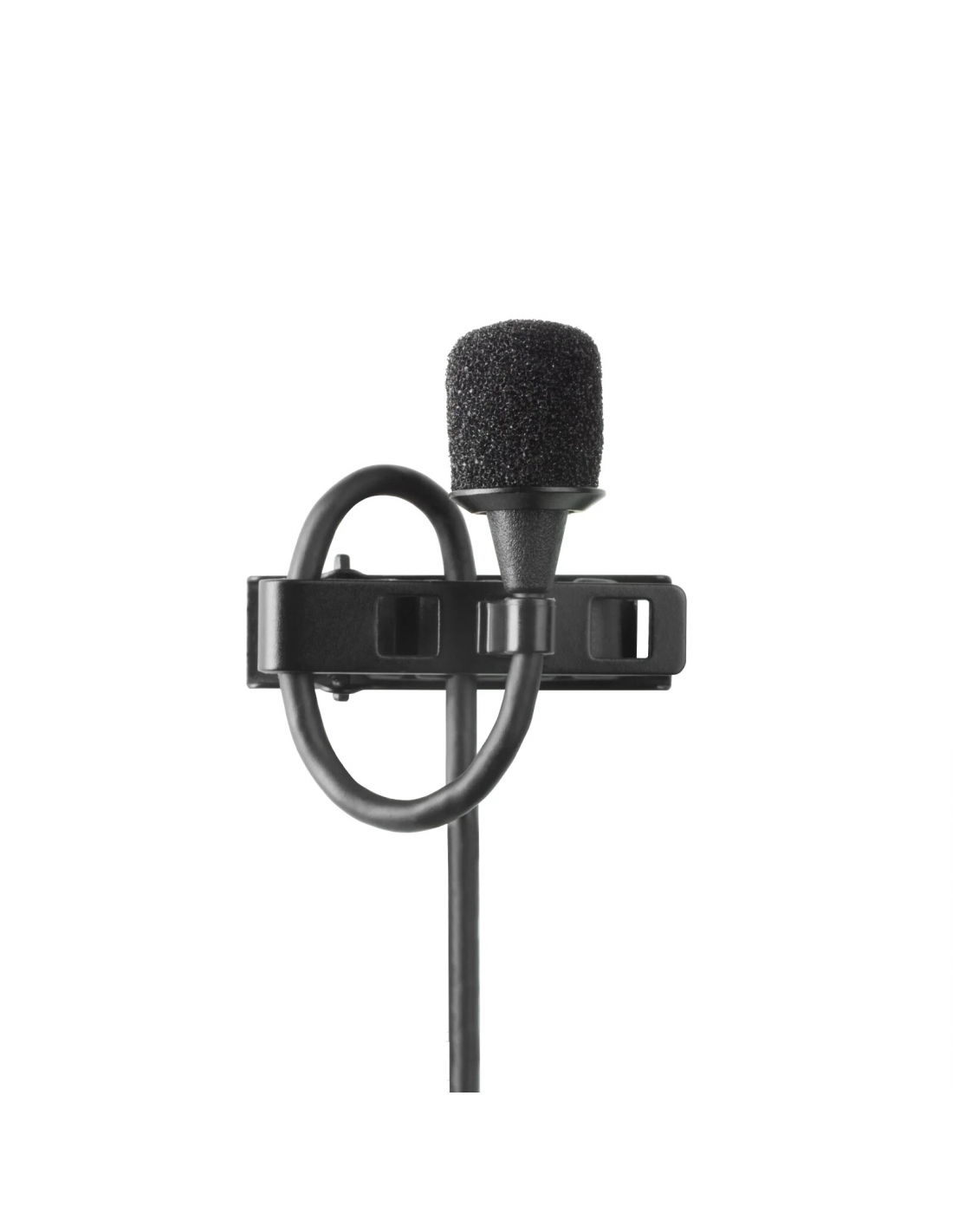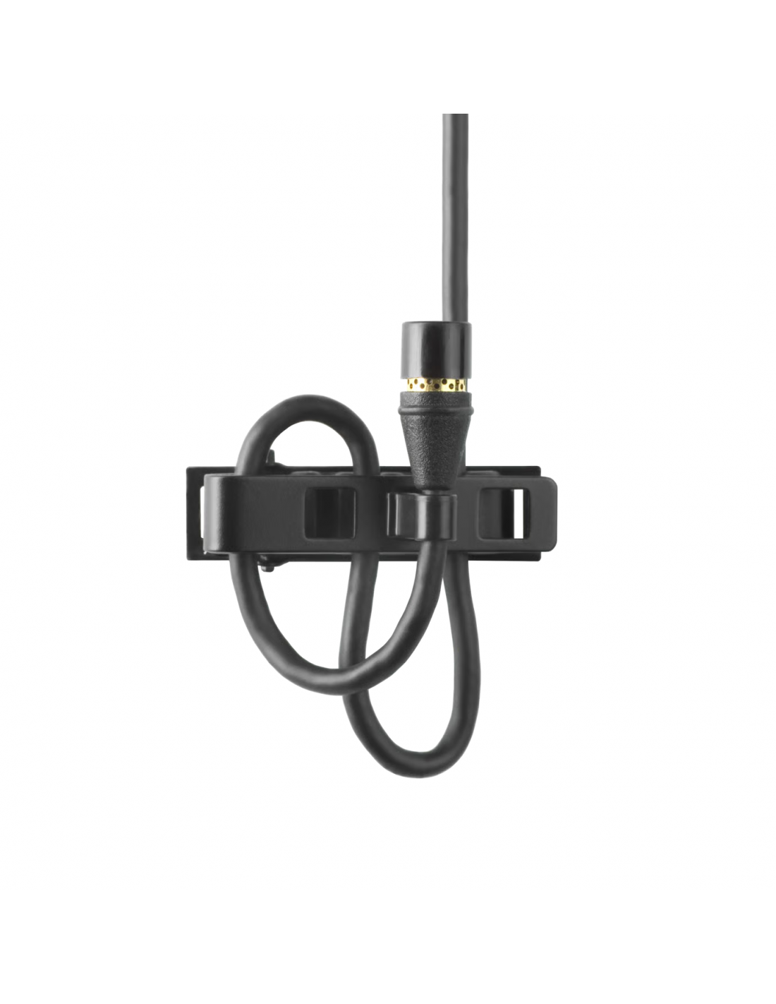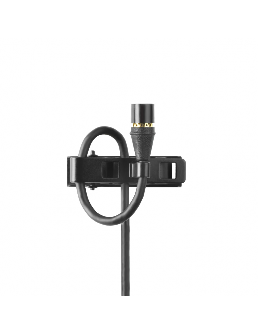 Microfono lavalier subminiaturizzato per utilizzo con body pack delle serie wireless. Capsula: Condensatore (Electret con alimentazione Bias +5V); Polare: Cardioide; Risposta: 20-20,000 Hz; Sens.: -51 dBV/Pa a 1kHz 1 Pa=94 dB SPL; SPL max (1KHz): 147 dB SPL ; S/N: 57 dB; Gamma dinamica: 111 dB. Rumore interno: 36.5 dB; Peso: 21 gr.. Cavo 1.5m a due conduttori schermato con connettore TA4F. Colore: Nero.