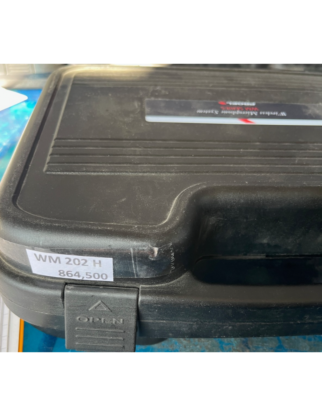 I radiomicrofoni serie WM202 sono sistemi UHF a singola frequenza controllata al quarzo, caratterizzati da una trasmissioneaffidabile e di ottima qualità. Il sistema WM202H è composto da ricevitore WM202, trasmettitore tascabile WM2H, lavalier e headset. E' dotato di una valigetta in ABS per il trasporto. Sono disponibili 4 frequenze diverse preselezionate in fabbrica, accuratamente scelte per permettere l'uso simultaneo di 4 apparati radio senza che interferiscano fra di loro.
