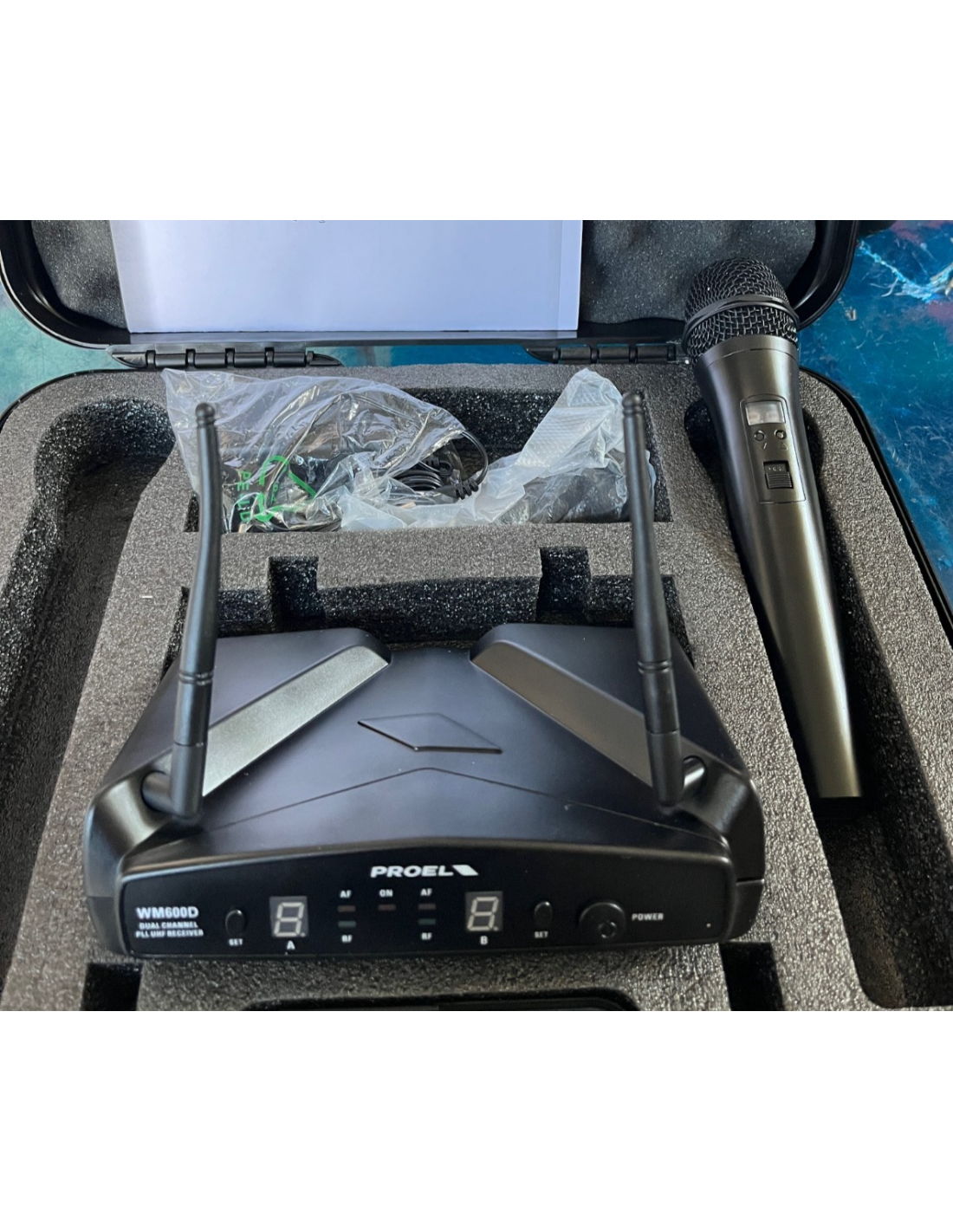 I radiomicrofoni della serie WM600 sono sistemi UHF a frequenza controllata PLL preprogrammata, caratterizzati da una trasmissione affidabile e di ottima qualità. Il sistema radiomicrofonico WM600M è composto da un ricevitore WM600 e da un trasmettitore palmare WM6M. E' dotato di una valigetta in ABS per il trasporto. Sono disponibili 4 canali/frequenze accuratamente scelte per permettere l'uso simultaneo di 4 apparati radio senza che interferiscano fra di loro.