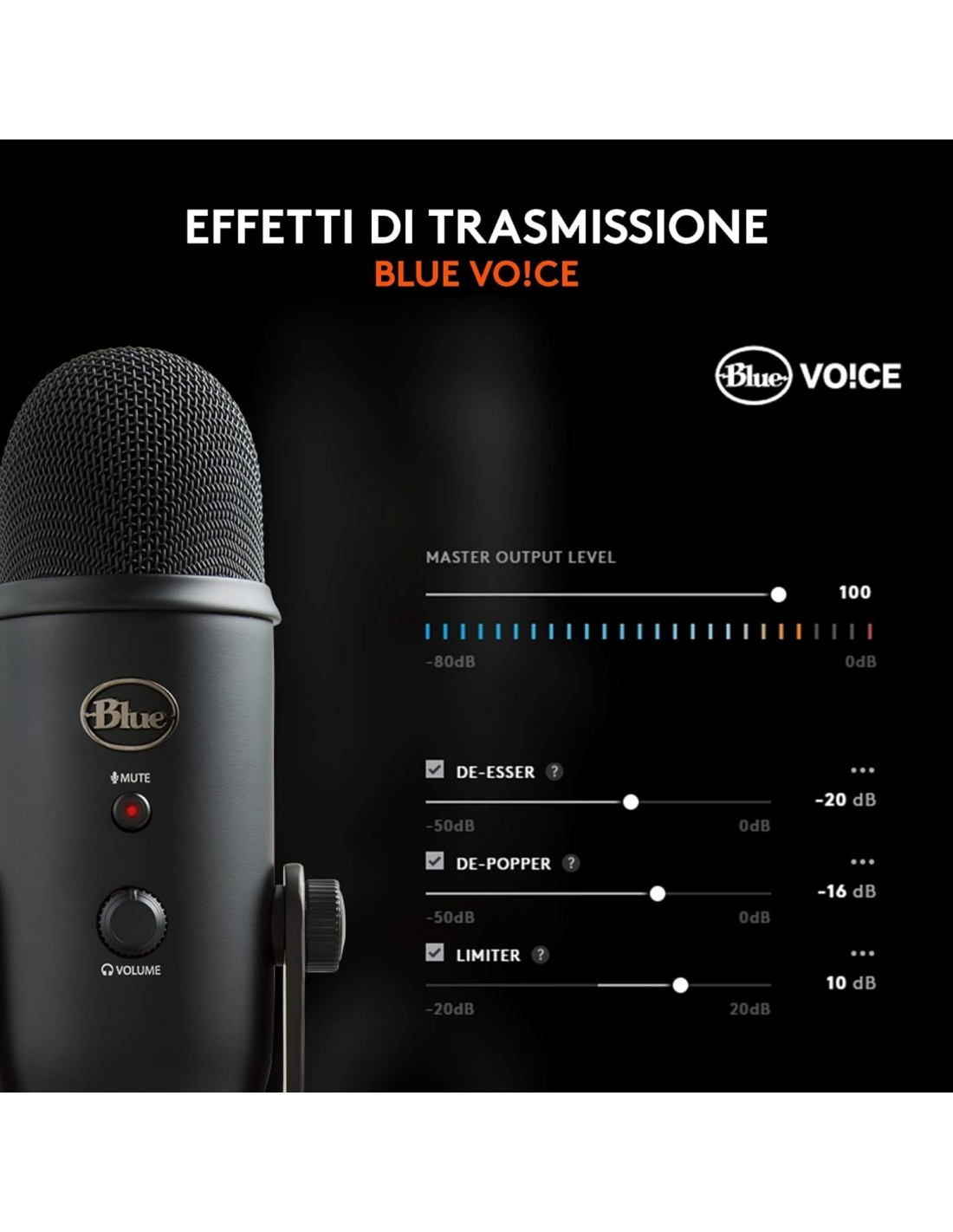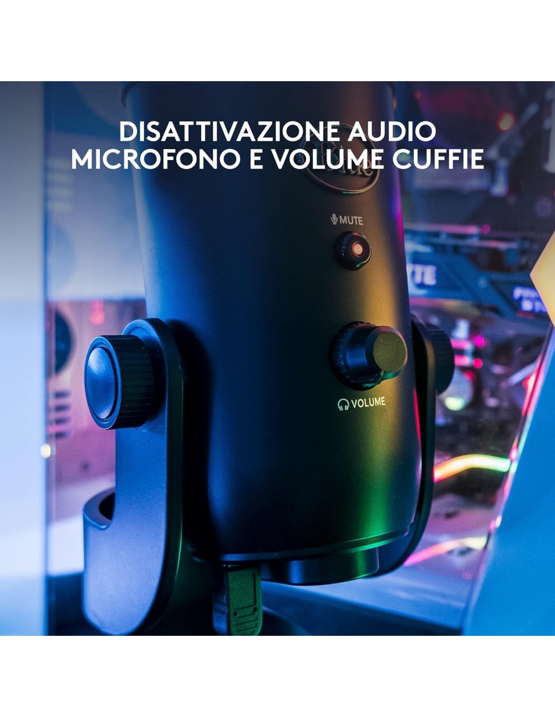 Logitech Blue Yeti Microfono USB per Registrazione, Streaming, Gaming, Podcasting su PC e Mac, Mic a Condensatore, Laptop, Computer, Effetti Blue VOICE, Stand Regolabile, Plug, Play, Nero