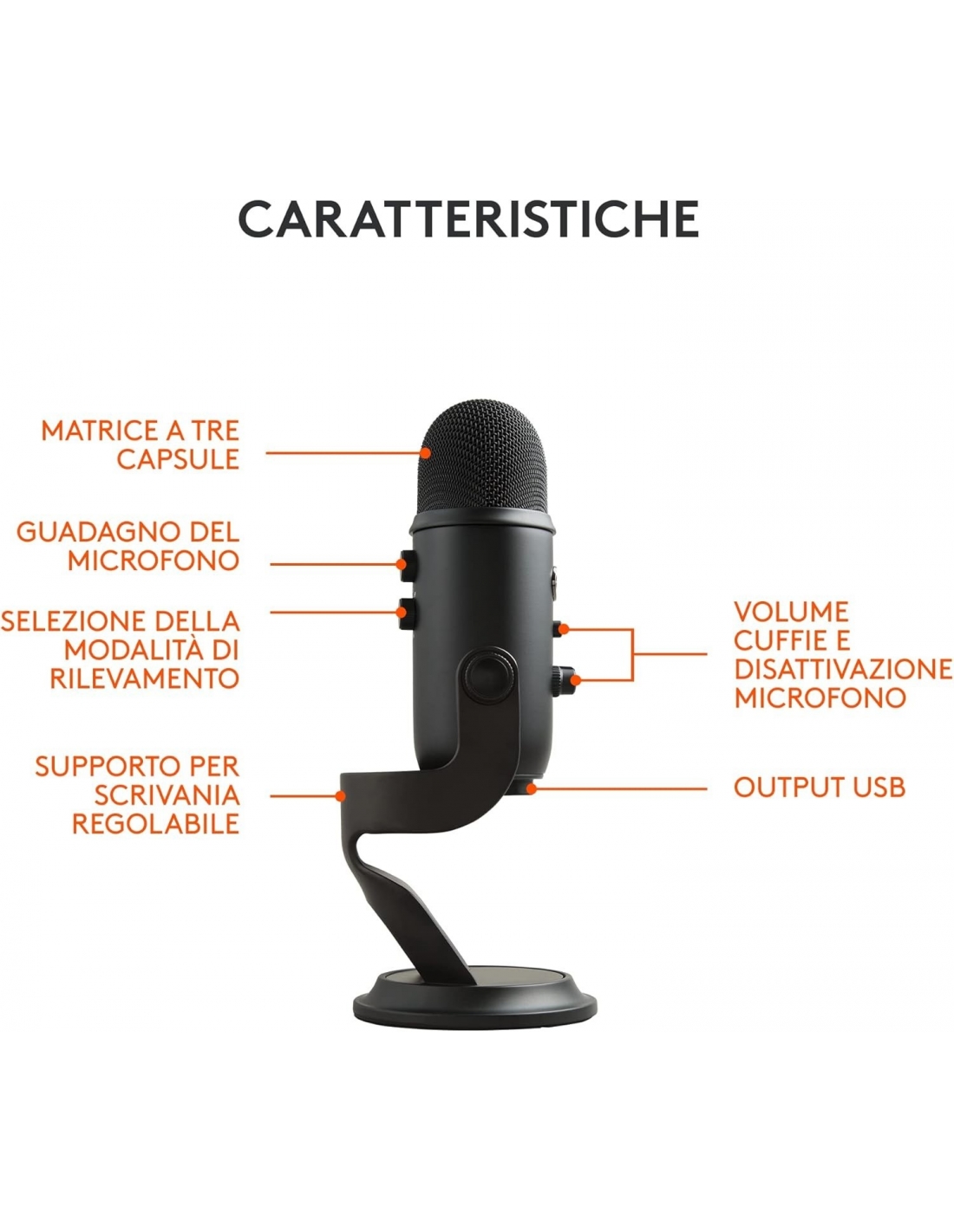 Logitech Blue Yeti Microfono USB da studio per Registrazione, Streaming, Gaming