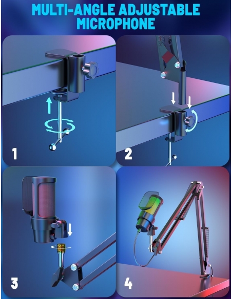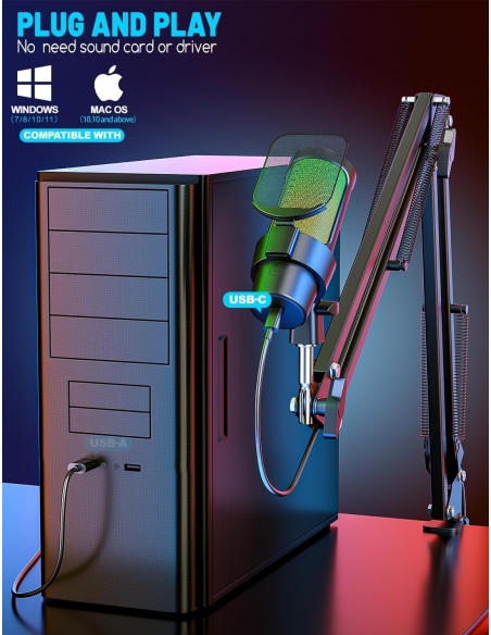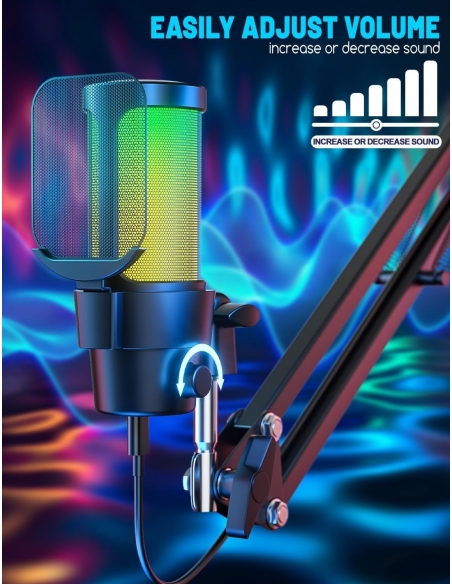 OBVHNUA Microfono con Asta per Gaming Streaming Podcast RGB
