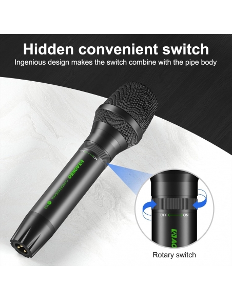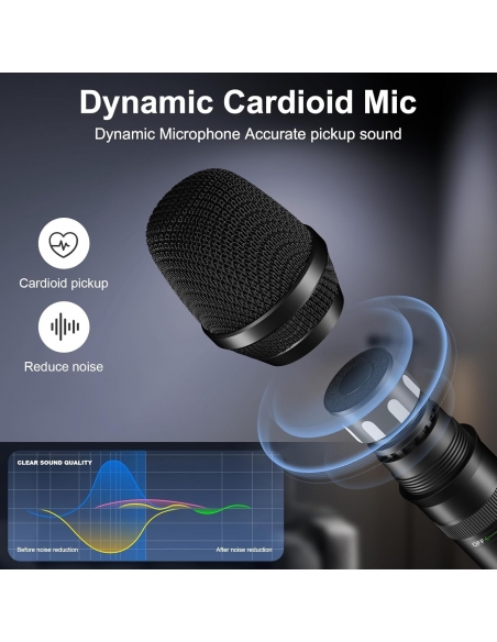 - Durata eccezionale: tutte le parti del microfono sono realizzate in una lega robusta, che può essere tranquillamente lasciata cadere da un'altezza di 2 metri. Progettati per resistere alle esigenze delle esibizioni dal vivo, i nostri robusti microfoni portatili sono costruiti per durare. Possono resistere ai rigori dell'uso regolare e fornire prestazioni costanti ovunque.