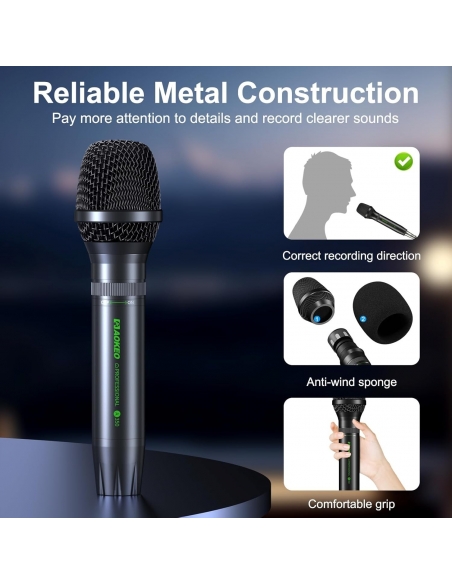 - Eccellente rifiuto del feedback: i nostri microfoni sono progettati per ridurre al minimo il rumore di fondo indesiderato e il feedback, consentendo ai cantanti di concentrarsi sulle loro prestazioni senza distrazioni.