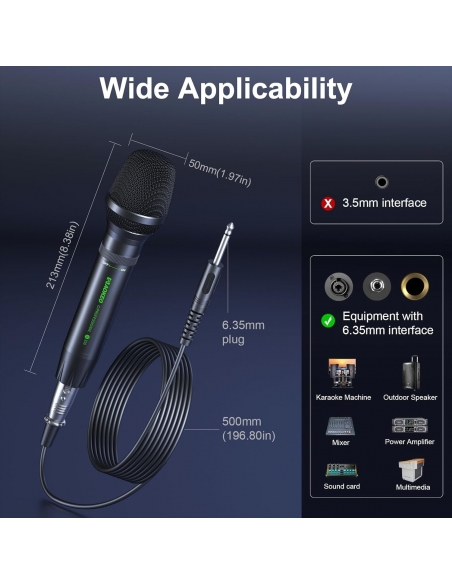 - Uso versatile: sia che tu stia cantando le tue canzoni preferite a un concerto, esercitando la tua voce durante le sessioni di karaoke o registrando la tua musica, i nostri microfoni dinamici universali offrono versatilità e adattabilità a diversi scenari di canto.
