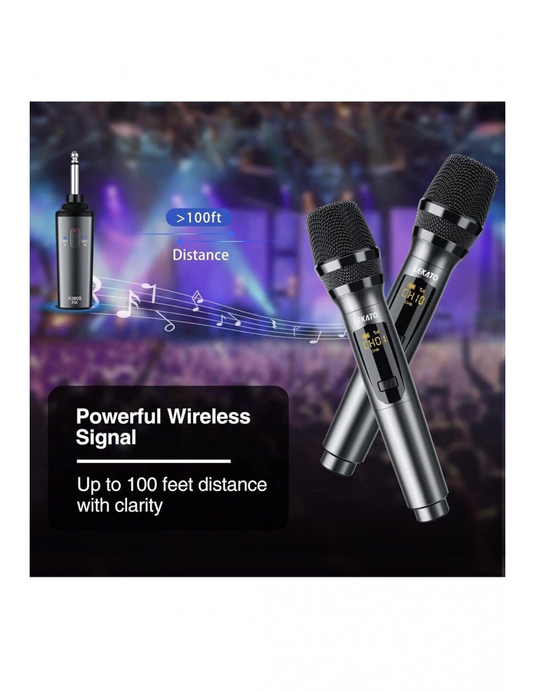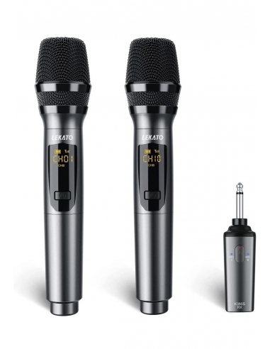 Lekato K380s Microfono wireless ricaricabile UHF professionale karaoke 2 PEZZI