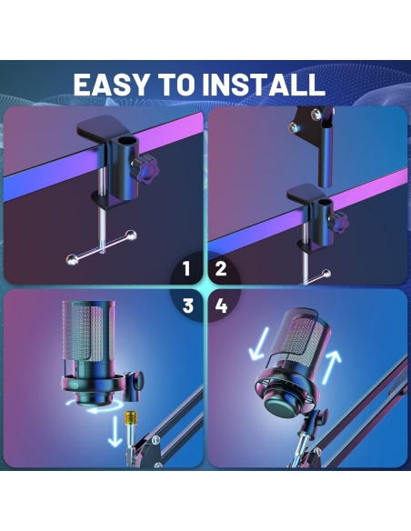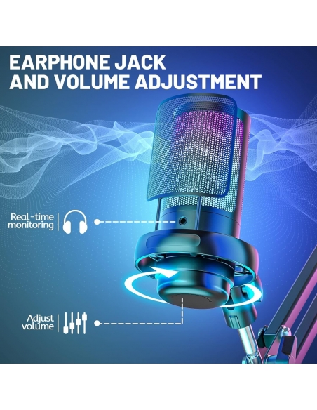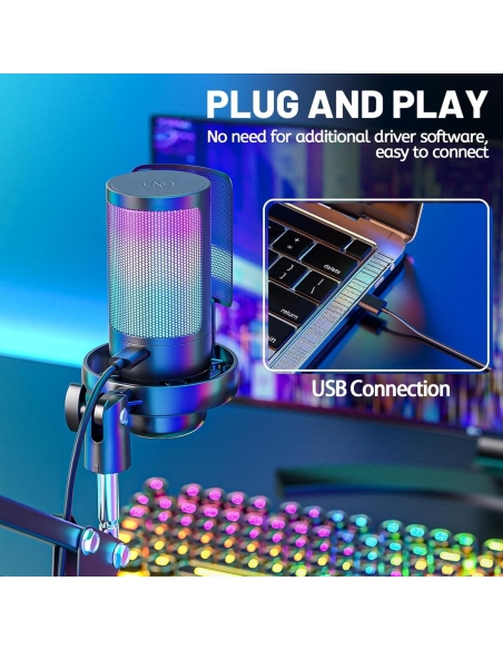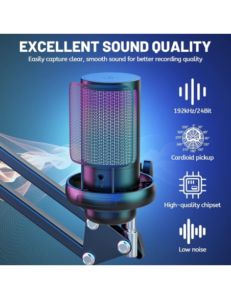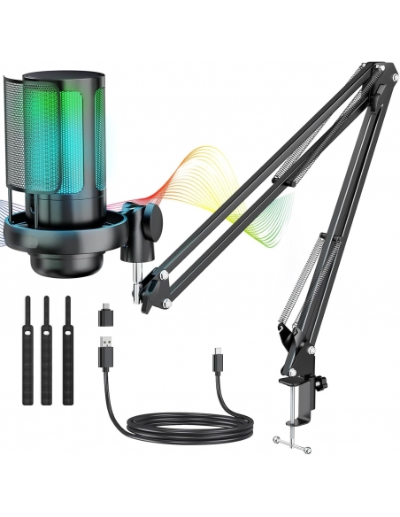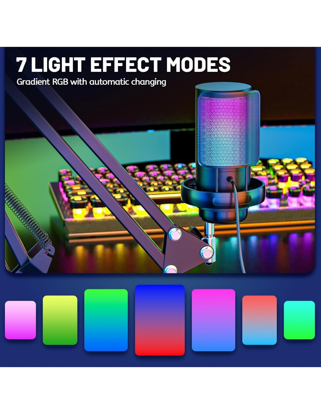 Anykuu Microfono Gaming a Condensatore RGB Plug & Play 192kHz/24-Bit