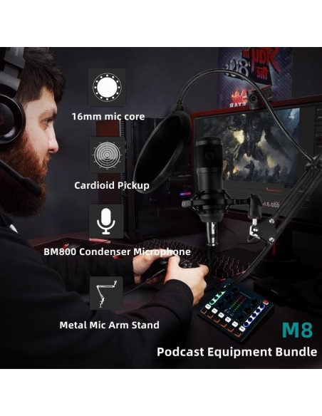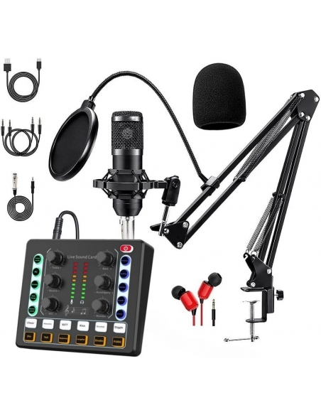 SKTEET Pacchetto microfono podcast con scheda audio live
