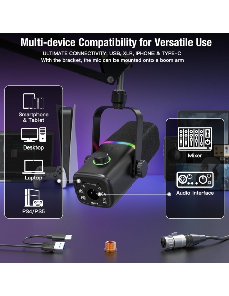 - Connettività USB/XLR migliorata: questo versatile kit microfono da gioco per PC offre compatibilità USB per lo streaming o la registrazione su PC e compatibilità XLR per il collegamento a mixer o schede audio per canto, podcast o produzione musicale. Inoltre, questo microfono podcast per il *Phone può essere facilmente collegato al tuo *Phone (inclusi *Phone 15 e 16), telefono di tipo C, iPad, MacBook e tablet Android utilizzando l'adattatore USB-* Phone in dotazione e l'adattatore da tipo C a USB. Inizia subito a creare contenuti per YouTube, Instagram, Zoom, TikTok, Twitch o il tuo Podcast ASMR.