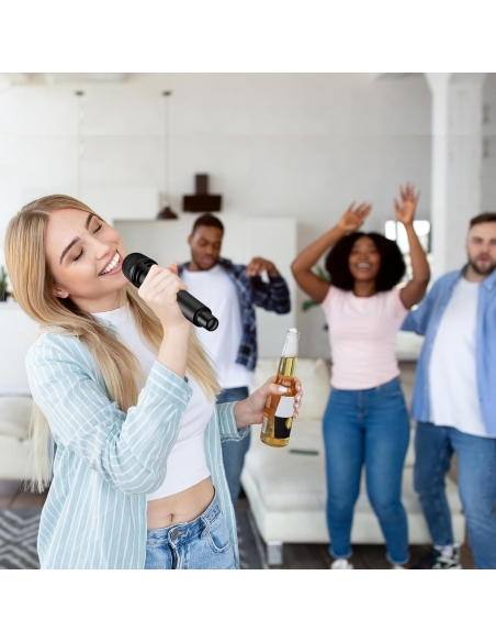 - Ampio raggio di ricezione: il ricevitore ha un raggio d'azione di 60 metri (campo libero) in modo da permetterti di muoverti liberamente con il tuo microfono karaoke durante le tue esibizioni. Che si tratti di eventi al chiuso o all'aperto, come karaoke in famiglia, riunioni in chiesa, matrimonio, riunioni o conferenze, questo sistema è la scelta perfetta.