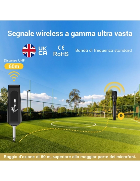 TONOR Microfono Senza Fili, UHF Sistema Wireless Microfonico Dinamico Portatile