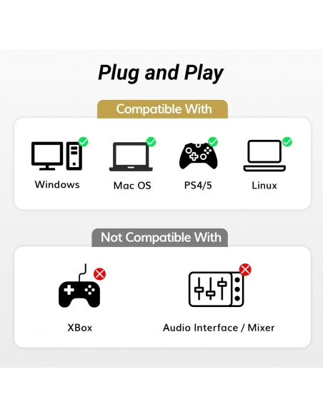 - Plug and Play: con una porta dati USB 2.0 non è necessario alcun software driver aggiuntivo o dispositivi esterni. Ideale per giochi, podcasting, riunioni zoom, streaming, chat Skype, Voice Over, ecc.