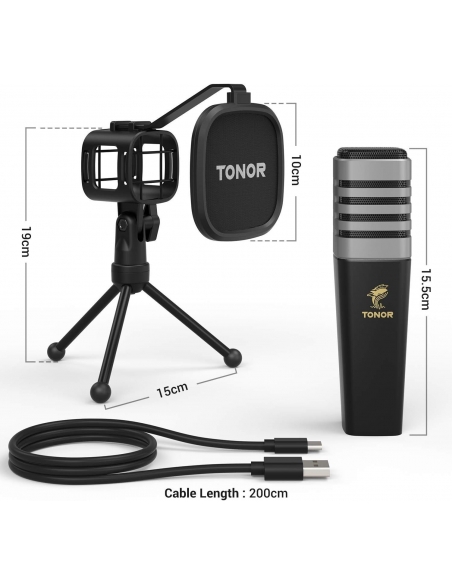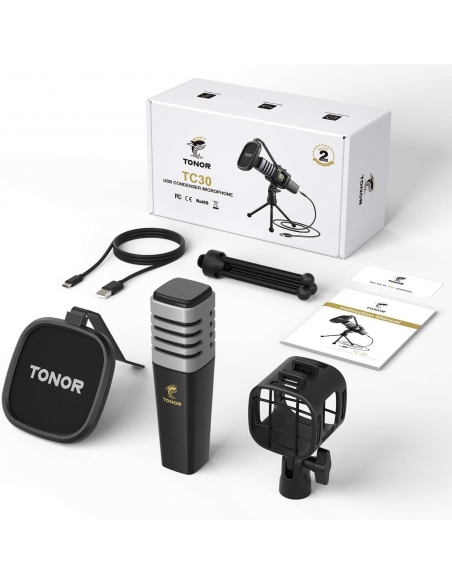 TONOR TC30 Microfono USB, Cardioide Condensatore Computer PC Mic con Supporto per Treppiede, Filtro Pop, Supporto Shock per Gaming, Streaming, Podcasting, YouTube, Voice Over, Twitch, Discordia,