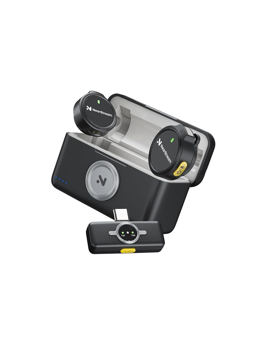 NearStream Microfono Lavalier Wireless con Cancellazione del Rumore & Modalità Silenziosa, Compatibile con Smartphone Android, iPhone, iPad, Laptop,PC, 50m di Distanza,1 RX+2 TX+1Custodia di Ricarica