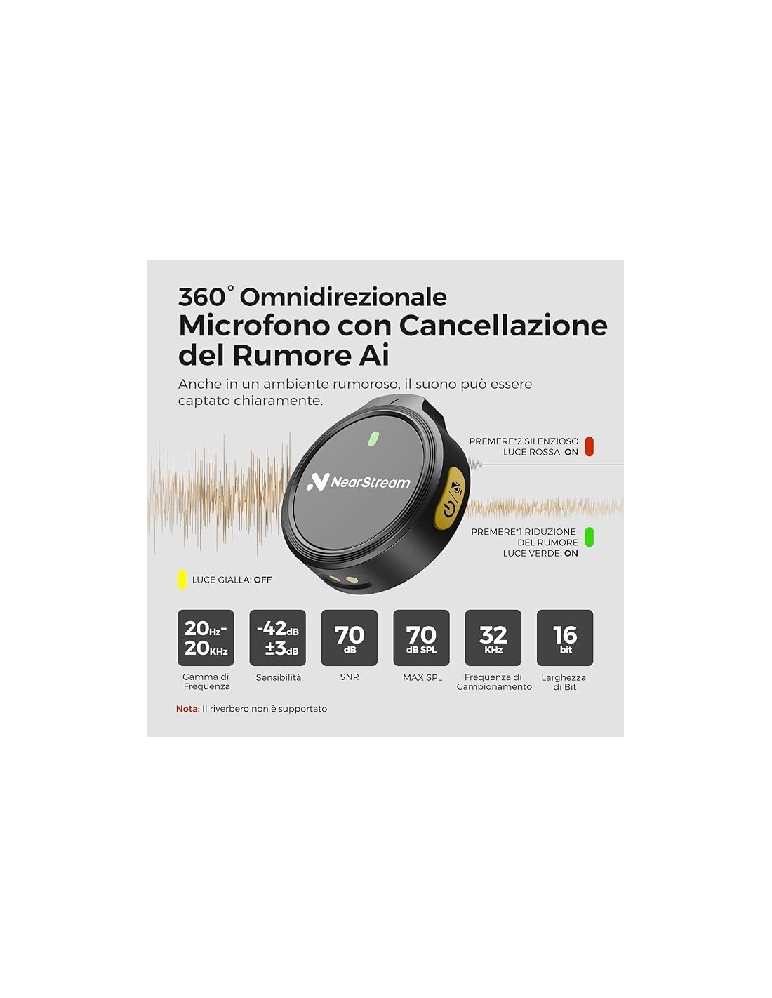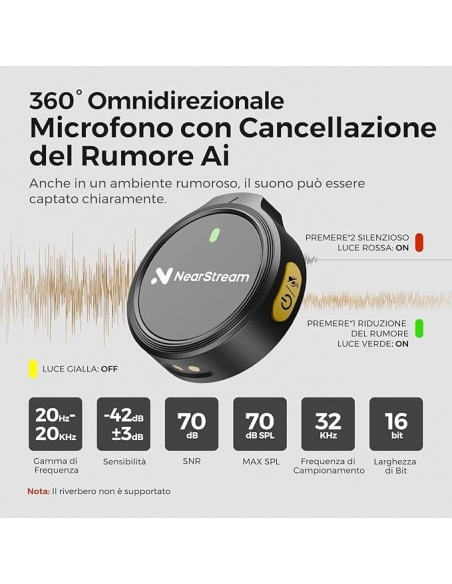 NearStream Microfono Lavalier Wireless con Cancellazione del Rumore