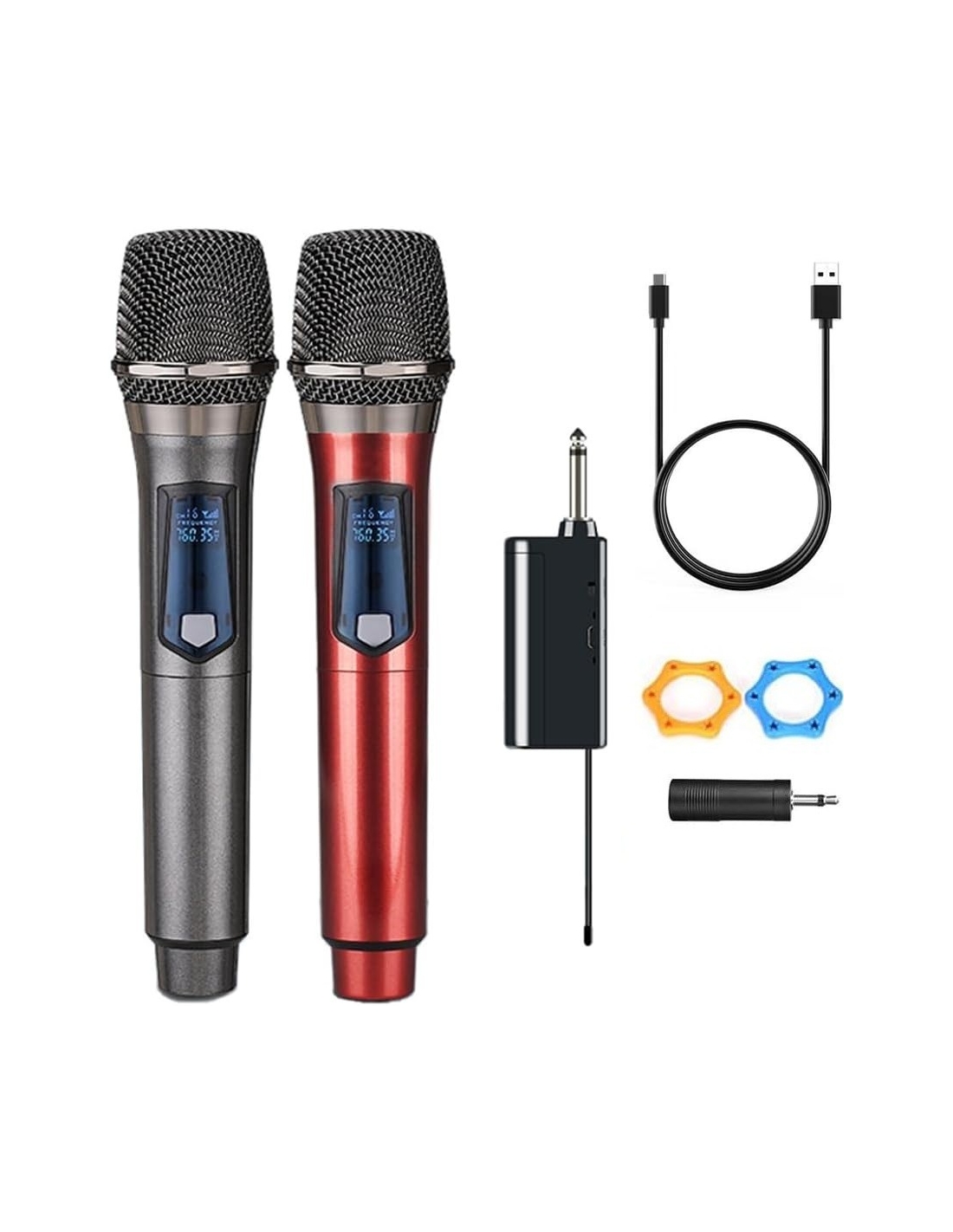 HUACAM Microfoni wireless dinamico portatile doppio per karaoke, matrimoni, DJ, feste, discorsi, chiesa, lezioni, sistema PA, 200 piedi, grigio e rosso