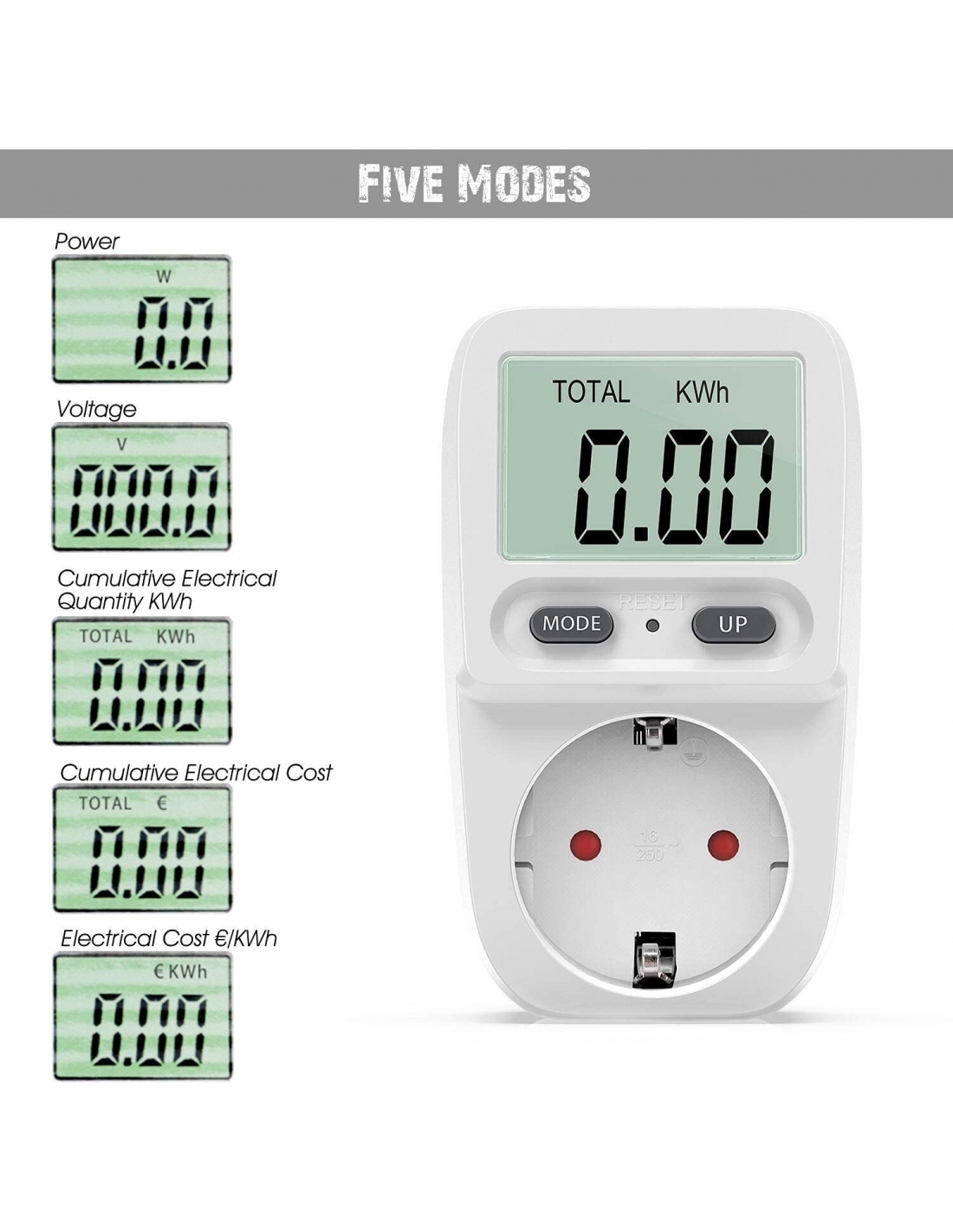 Misuratore dei costi energetici schermo LCD protezione da sovraccarico 3680 W