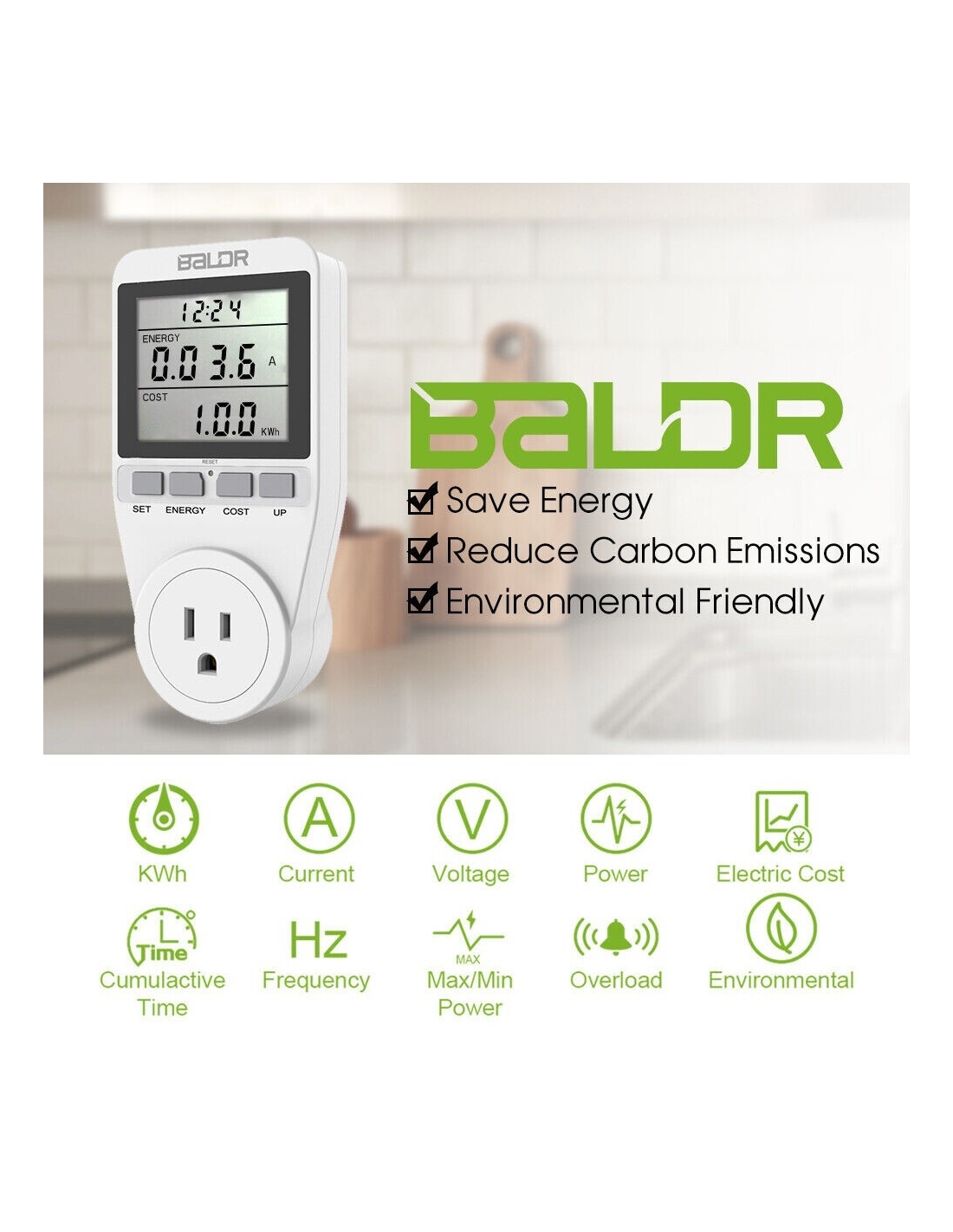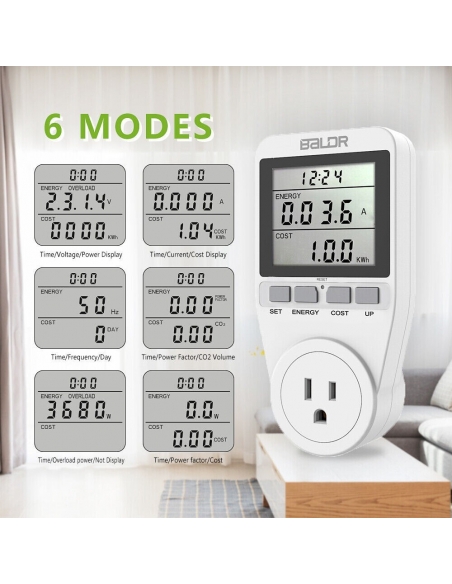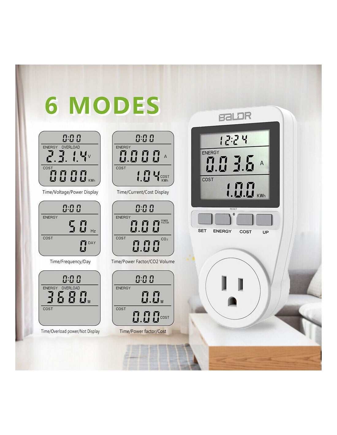 BALDR Misuratore di potenza a risparmio energetico Wat Kwh Analizzatore di elettricità 6 modalità