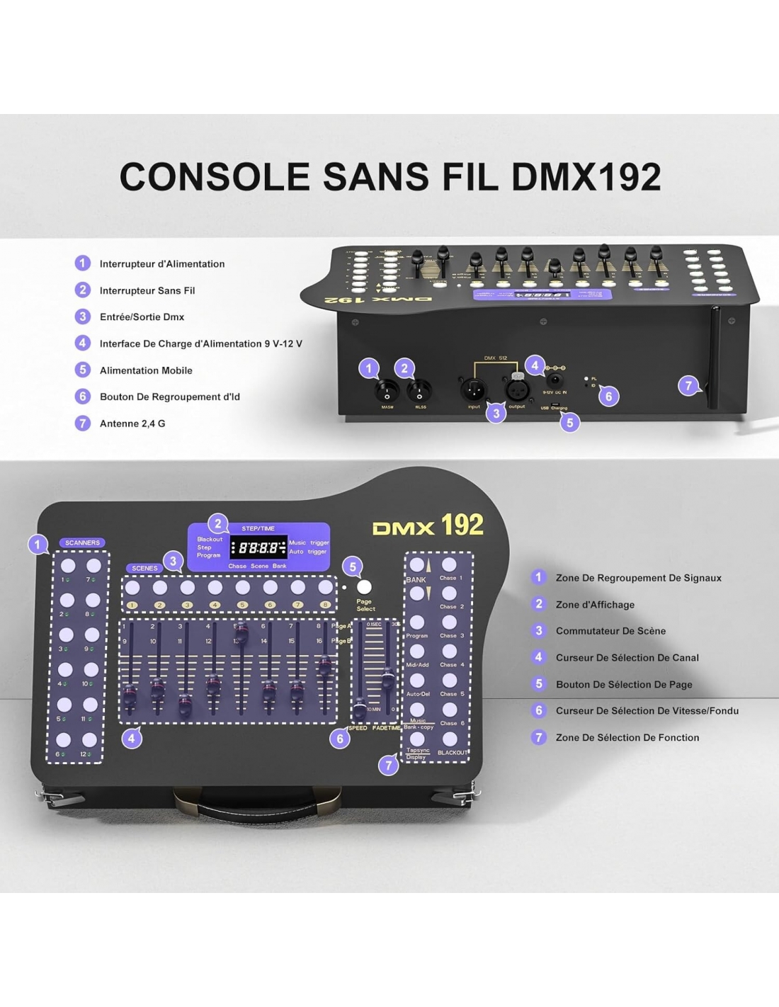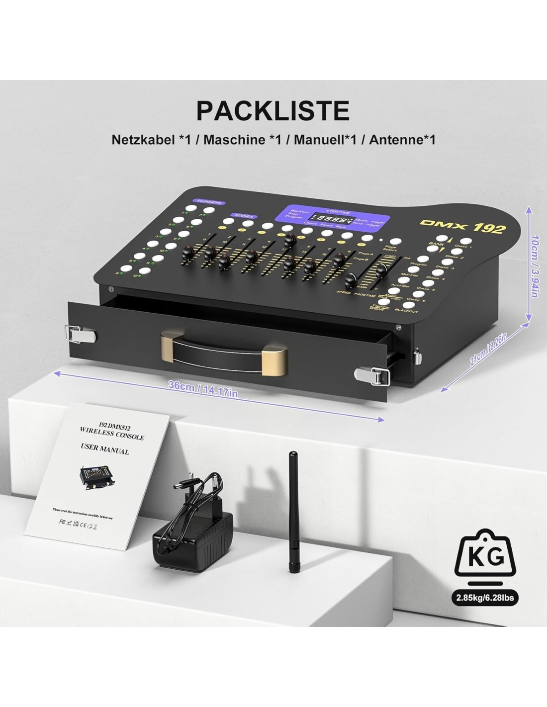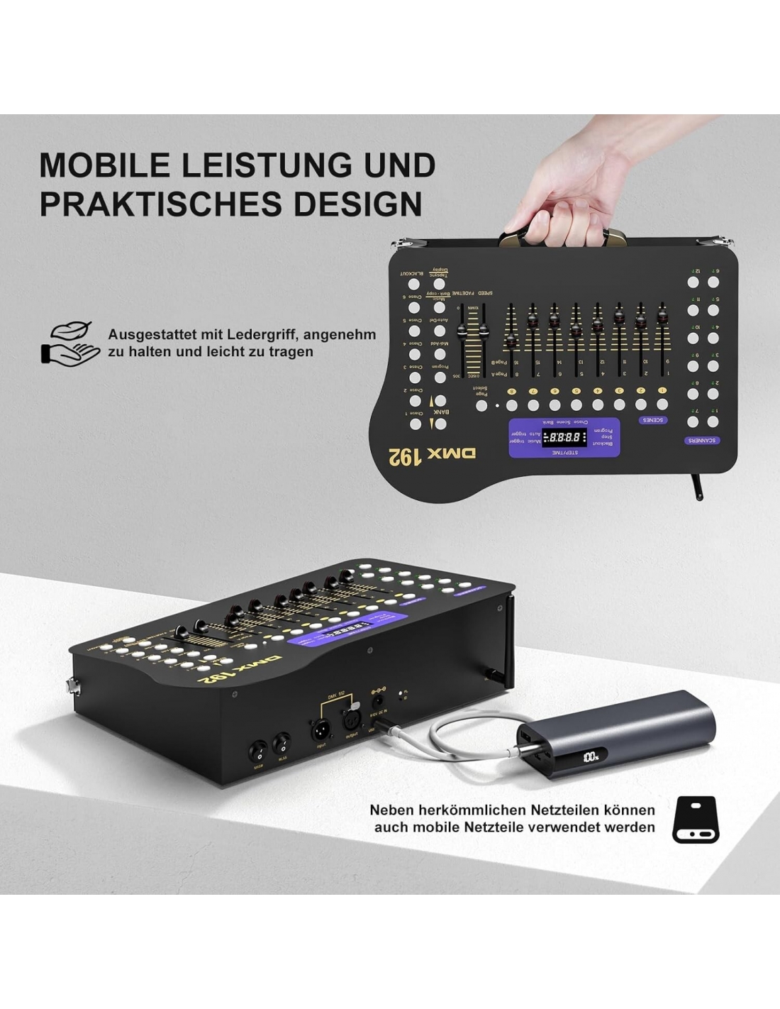 U`King DMX Controller 192 Canali DJ Controller con Cassetto, con Trasmettitore Wireless DMX, per DMX Controller 512, Festa, Moving Head Luce da discoteca, Luce per feste Halloween