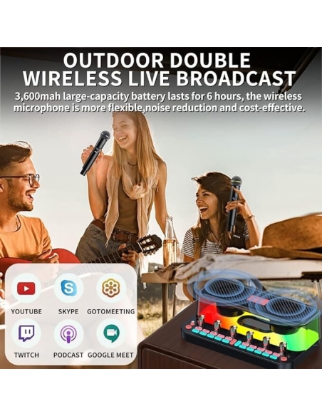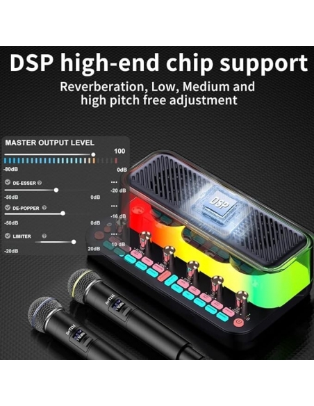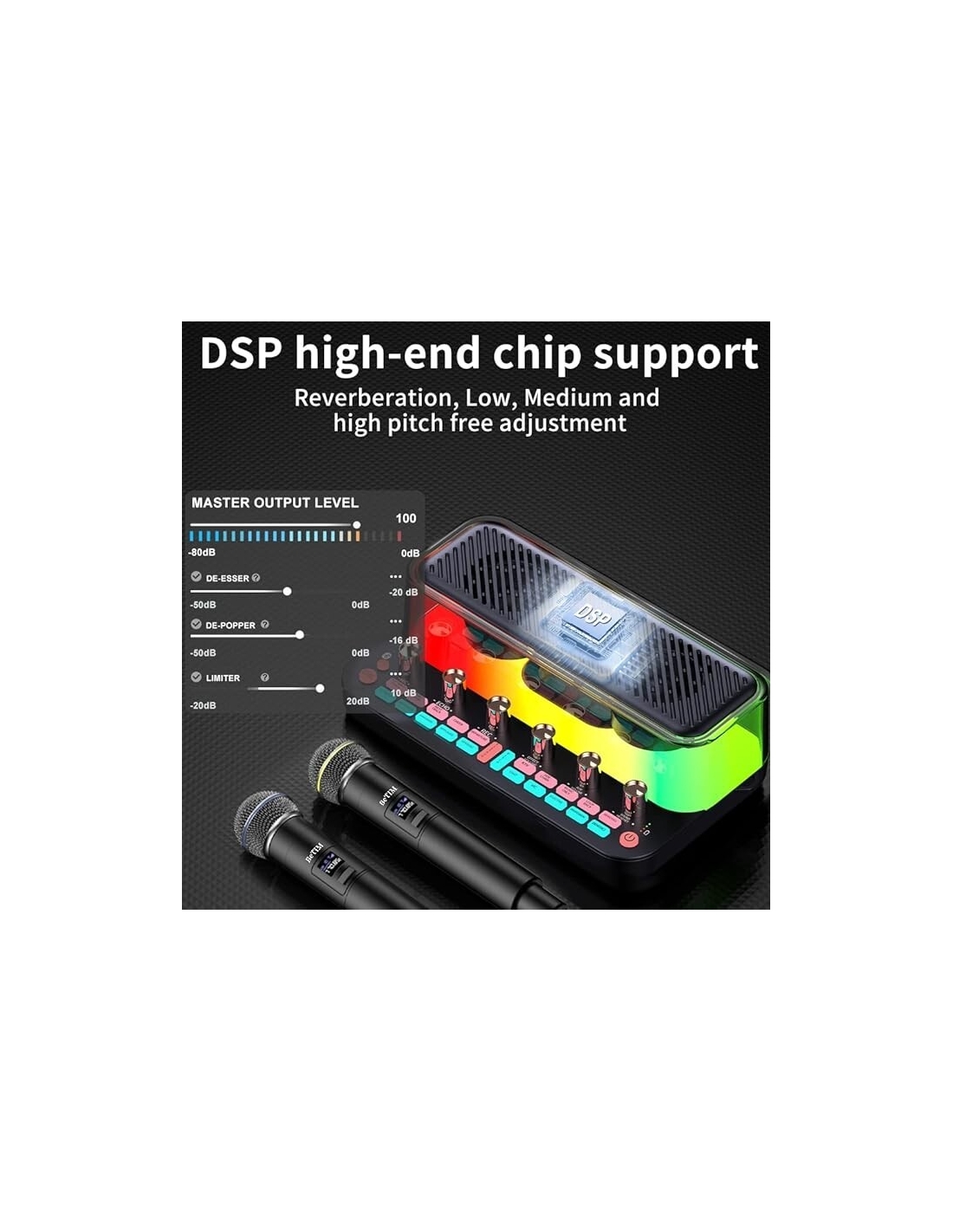 〖MIXER AUDIO〗Con il mixer audio, hai il controllo completo sulle impostazioni audio. Regola i livelli del volume, applica effetti e ottimizza il suono per creare un podcast o una performance karaoke di livello professionale. L'interfaccia intuitiva del mixer semplifica la gestione di più ingressi audio, garantendo un'uscita audio fluida e ben bilanciata.