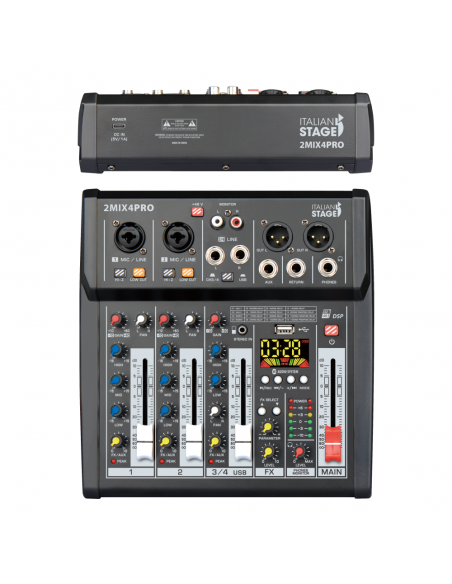 ITALIAN STAGE 2MIX4PRO Mixer Audio con Lettore USB BT , Registratore ed effetti