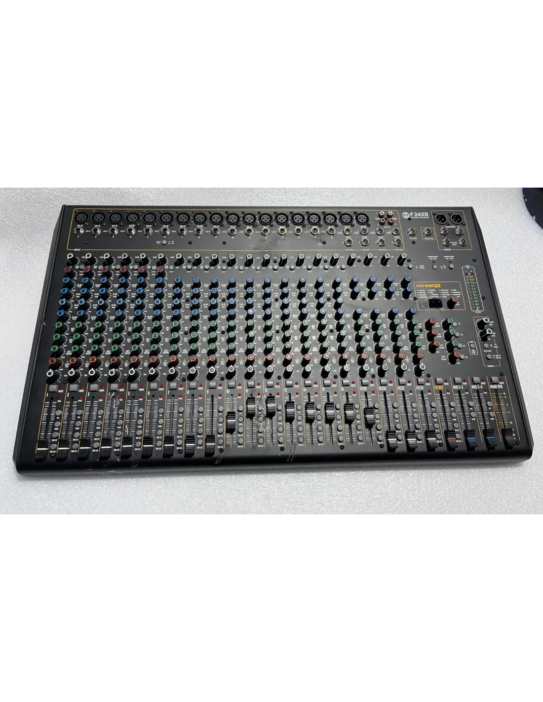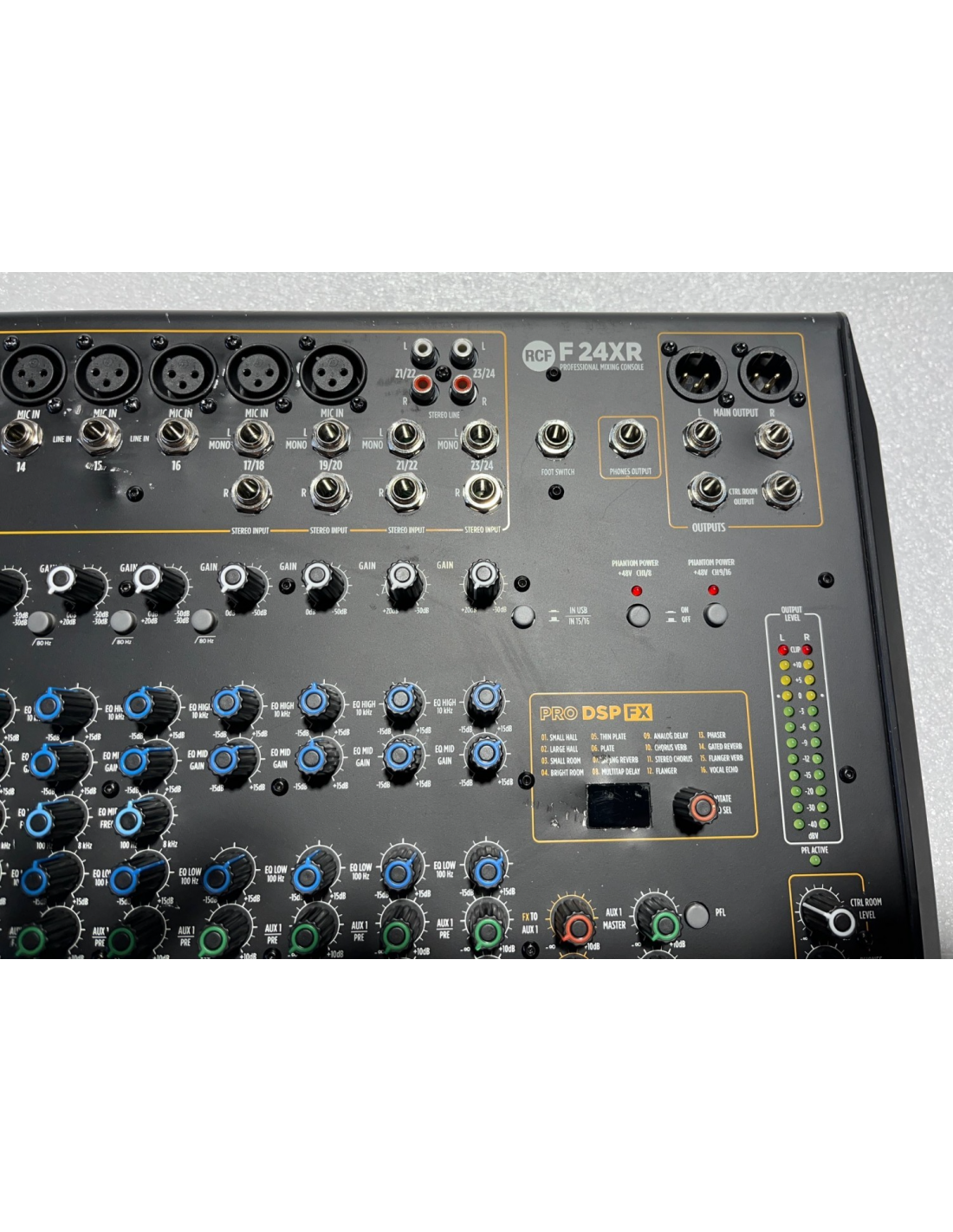 F 24XR dispone di 18 ingressi microfonici,16 ingressi di linea, 4 ingressi di linea stereo, dispone inoltre di un multi-effetto interno, funzione di registrazione e riproduzione stereo via USB, di un'uscita stereo bilanciata (stereo XLR + TRS). I canali mono sono provvisti di EQ a 3 bande con frequenza selezionabile nella banda MID, i canali stereo dispongono di EQ a 3 bande. Il mixer dispone inoltre di una scheda effetti interna PRO DSP FX con 16 presets e di 4 mandate ausiliarie (2 pre,1 pre/post fader, 1 FX post fader). Dispone inoltre di 2 BUS di uscita stereo e controllo dei livelli tramite fader da 60mm.