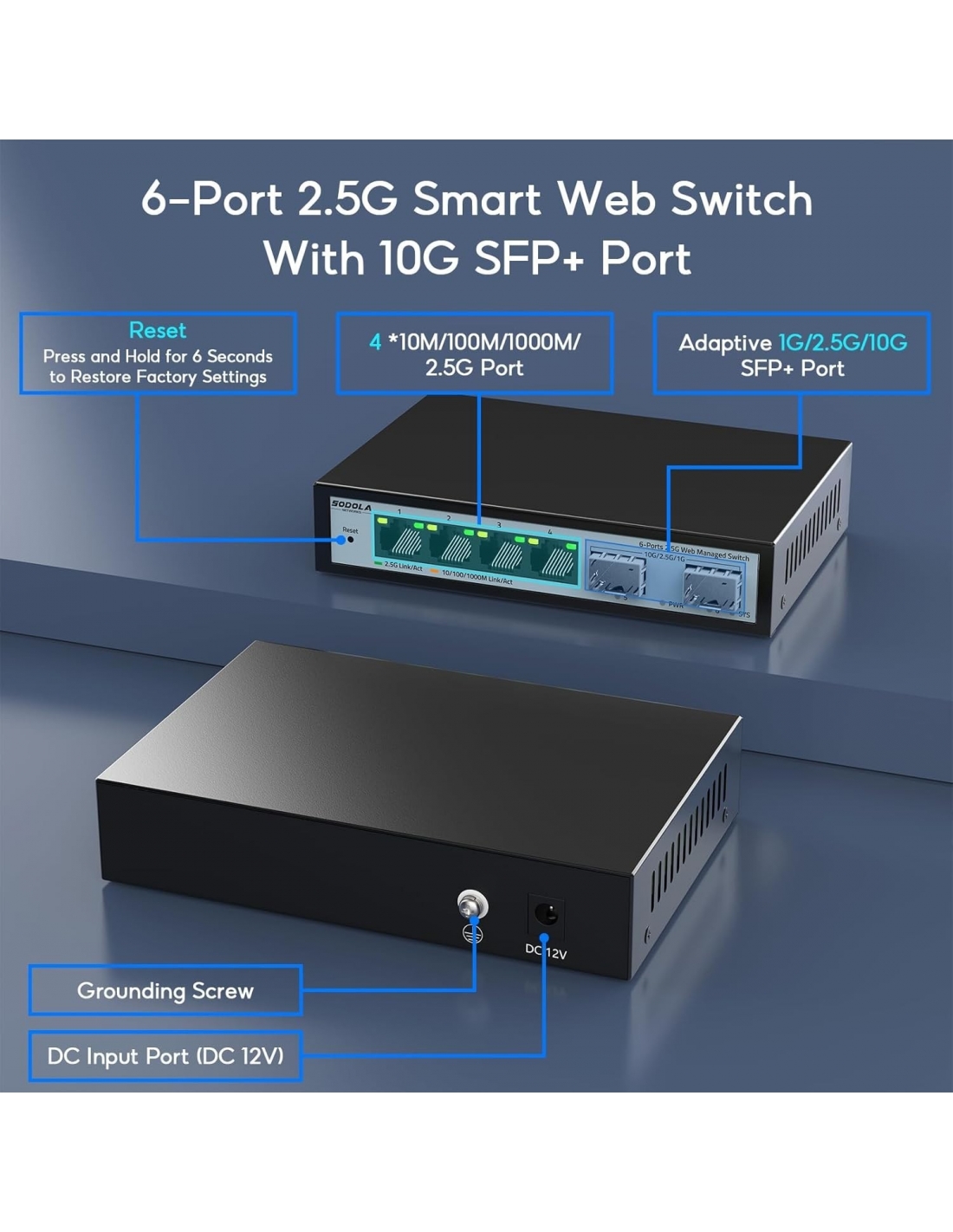 SODOLA SL-SWTG124ASD Switch Web Facile gestito 6 porte 2,5 G, 4 porte Base-T