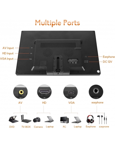 - Ampia applicazione: il display LED WHOLEV offre molteplici interfacce, tra cui porta HDMI, porta AV, porta VGA e jack per cuffie. È perfetto come monitor CCTV, monitor per PC o monitor di sicurezza e consente di estendere facilmente la visualizzazione da diverse sorgenti video alla visualizzazione Full HD.