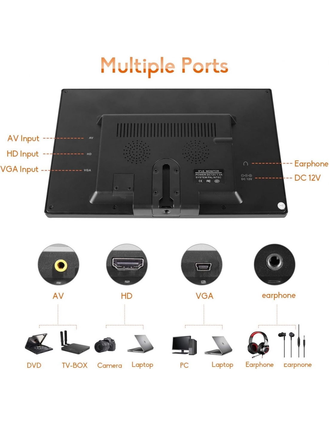 - Piacere visivo: lo straordinario schermo LED da 9 pollici con risoluzione HD 1024 x 600 offre dettagli eccellenti ed è perfetto come monitor CCTV, monitor per PC o monitor per interni. Inoltre, è possibile utilizzare lo schermo come mini TV, scanner fotografico o display video.