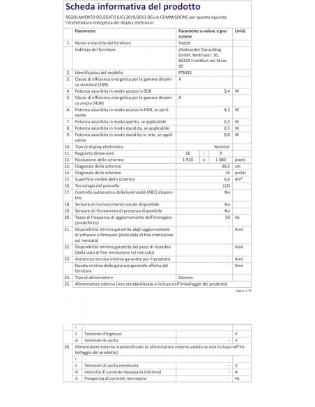 Yodoit PTM15 15,6" Monitor portatile 1920×1080 Schermo monitor FHD 100% SRGB