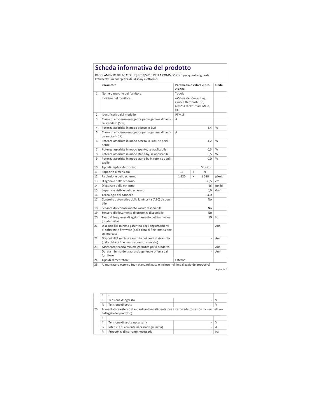 - Classe di efficienza energetica