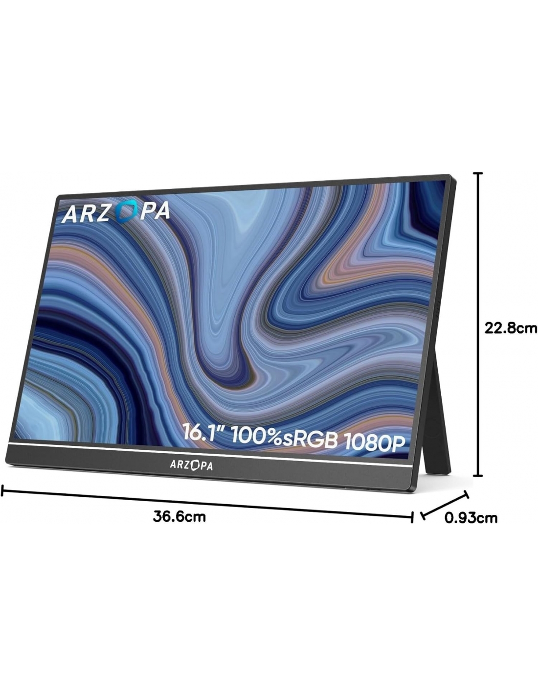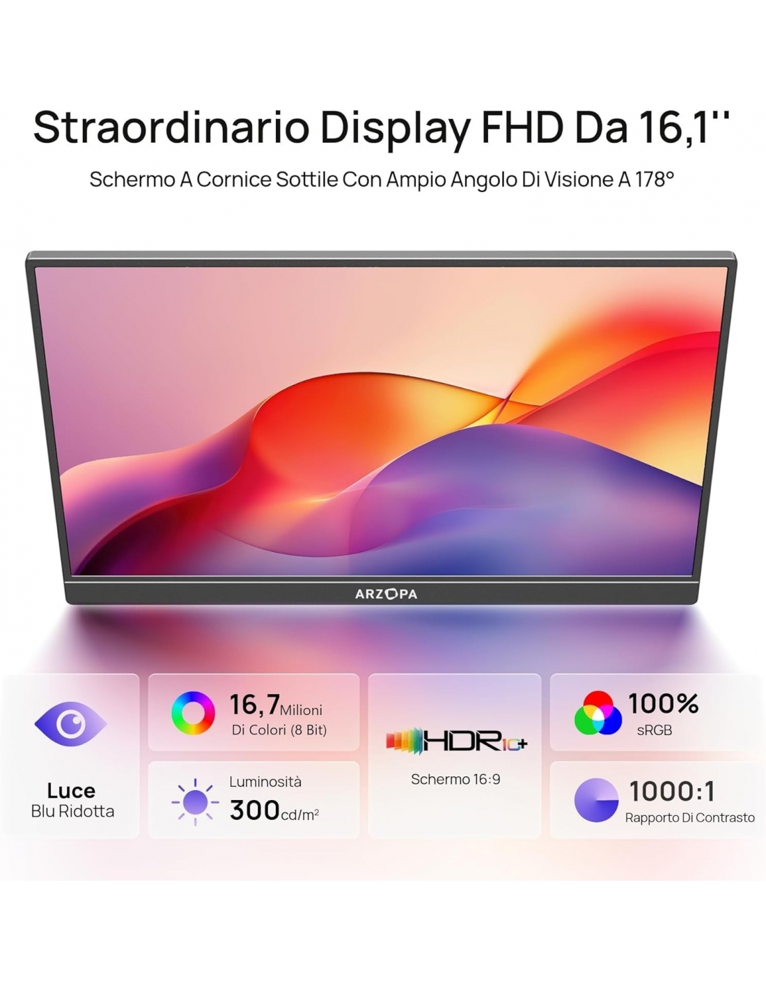 ARZOPA Z1C Monitor Portatile 16,1" IPS 100% sRGB FHD 1080P HDR10 Plug & Play
