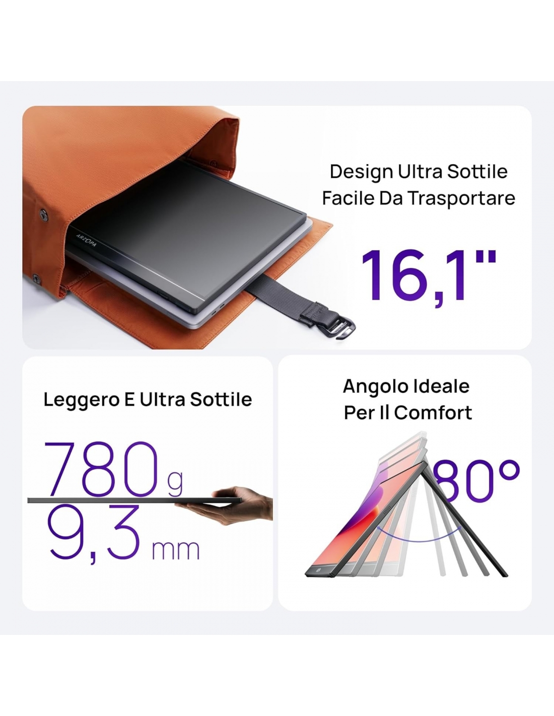 ARZOPA Z1C Monitor Portatile 16,1" IPS 100% sRGB Schermo FHD 1080P HDR10 Ultra Sottile 9.3mm Altoparlanti Integrati Plug & Play per Laptop PC Mac Console