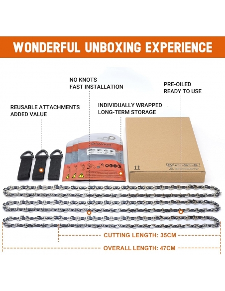 SAVIOR 3 Catene per motosega 3/8 "LP 1,1 mm 52 TG per guida da 35 cm compatibile con Makita DUC353 Einhell GP-LC 36/35 Li-Solo Bosch Husqvarna Dolmar Oregon