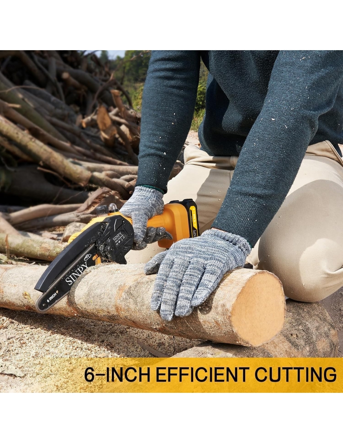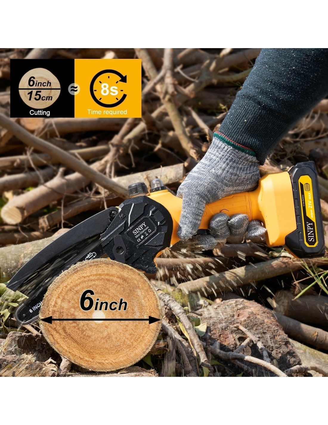 SINPY SPY-YL6 Mini Motosega a Batteria 6 Pollici 2 Batt. 21V 2Ah 880W con Oliatore automatico.
