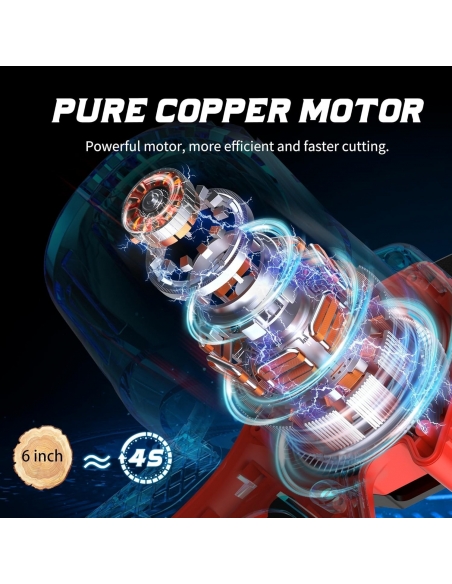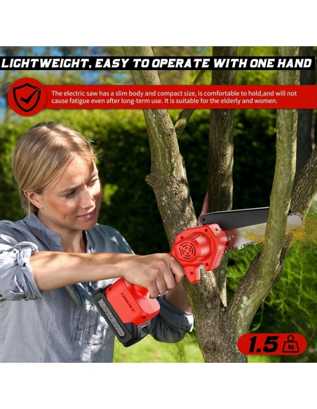 - Potenza potente e taglio rapido: la mini motosega da 6 pollici è dotata di un motore in rame puro da 800 W, una catena in acciaio al manganese con velocità fino a 34,5 piedi al secondo. La motosega a batteria senza fili può tagliare un tronco di 6 pollici di diametro in circa 10 secondi, migliorando notevolmente l'efficienza di taglio. La mini motosega Rotorazer può anche tagliare senza problemi blocchi di legno più spessi che altre motoseghe hanno difficoltà a gestire, facilitando i lavori di potatura degli alberi, campeggio e giardinaggio.
