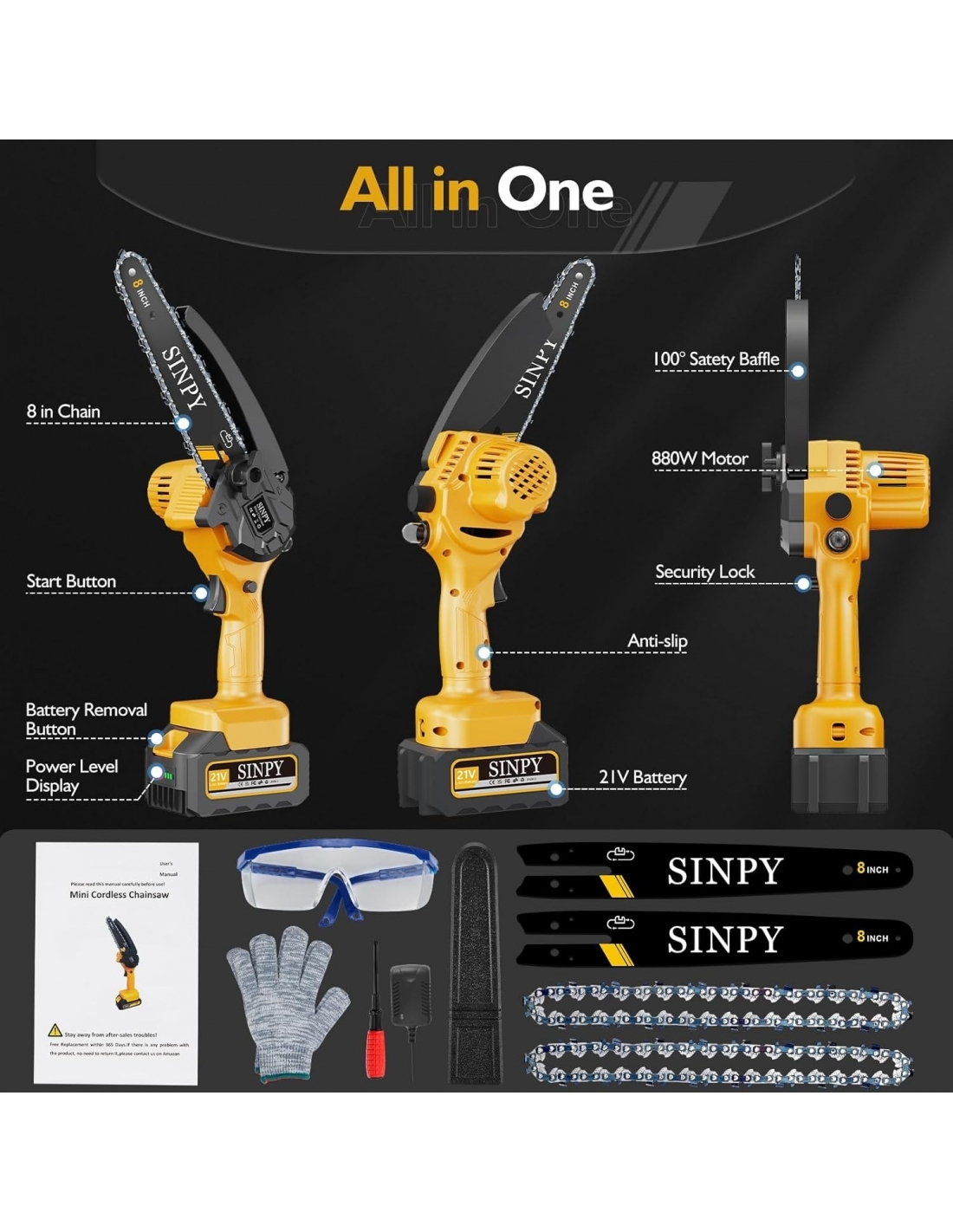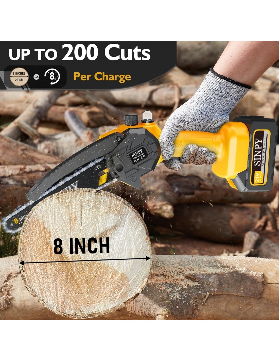 SINPY 8 Pollici Mini Motosega a Batteria per Potatura, 2 x 4000 mAh