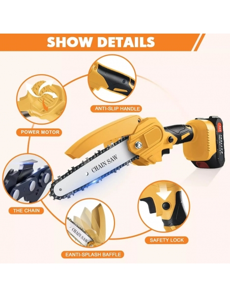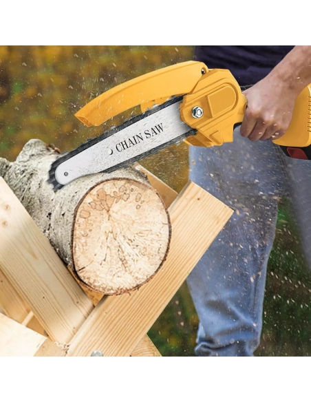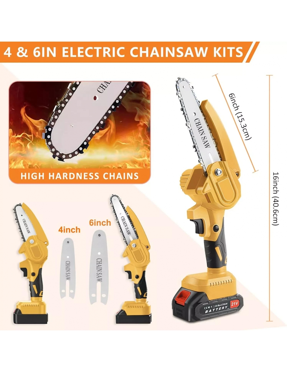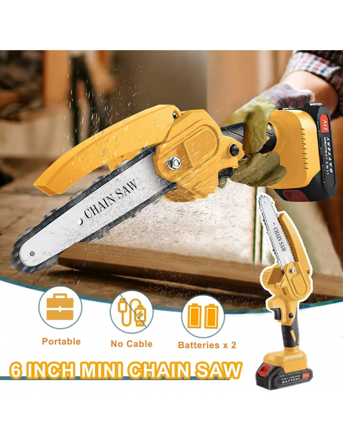 Mini Motosega a Batteria 2 x 21V Portatile Taglio Legno e Giardinaggio Giallo 6"