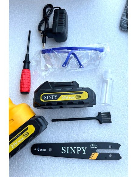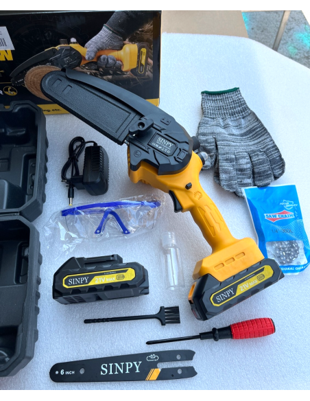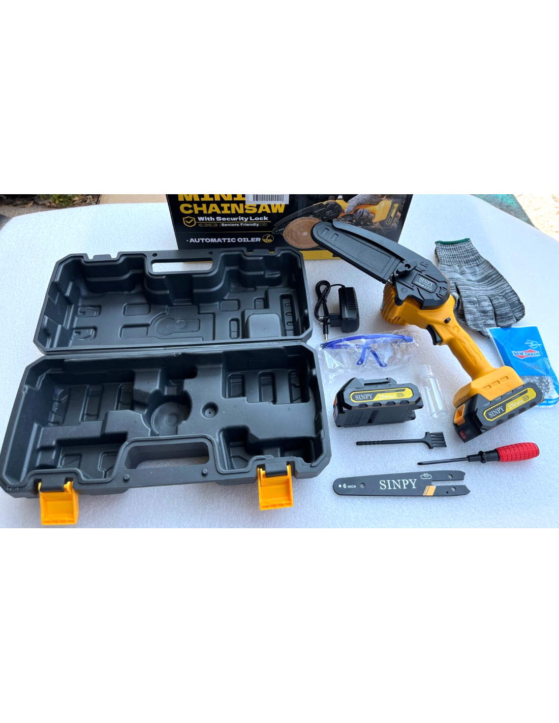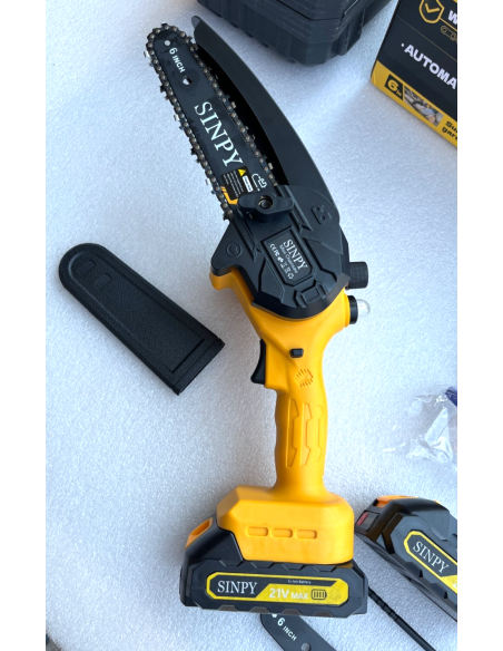 SINPY SPY-YL6 Mini Motosega a Batteria 6 Pollici 2 Batt. 21V 2Ah 880W con Oliatore automatico.