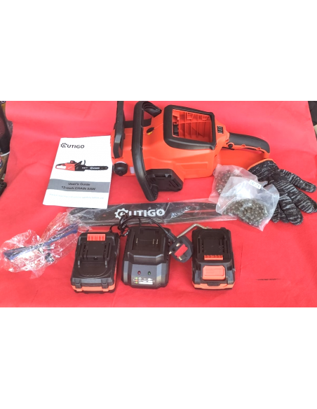 Outigo Motosega a batteria, motore brushless da 1000 W, motosega elettrica da 12 pollici con 2 batterie da 4500 mAh, 1 catena + 1 barra guida
