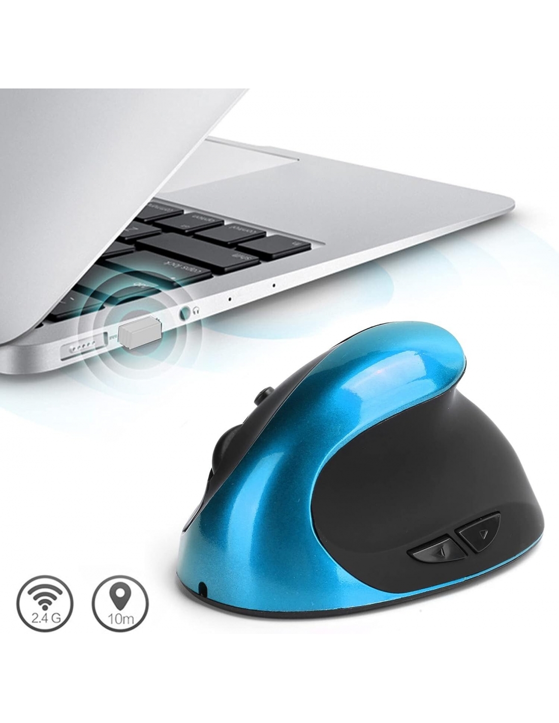 Mouse Wireless Verticale Ergonomico, Mouse Ottico Verticale 2.4G, Mouse per Computer da Gioco per Ufficio con Impugnatura Ergonomica di Terza Generazione, 1600 DPI 6 Tasti(Blu)