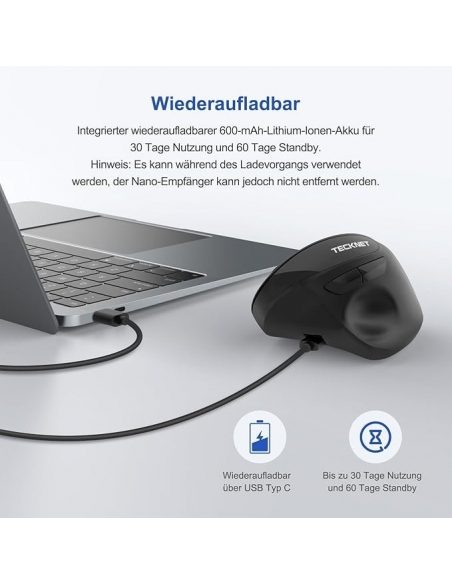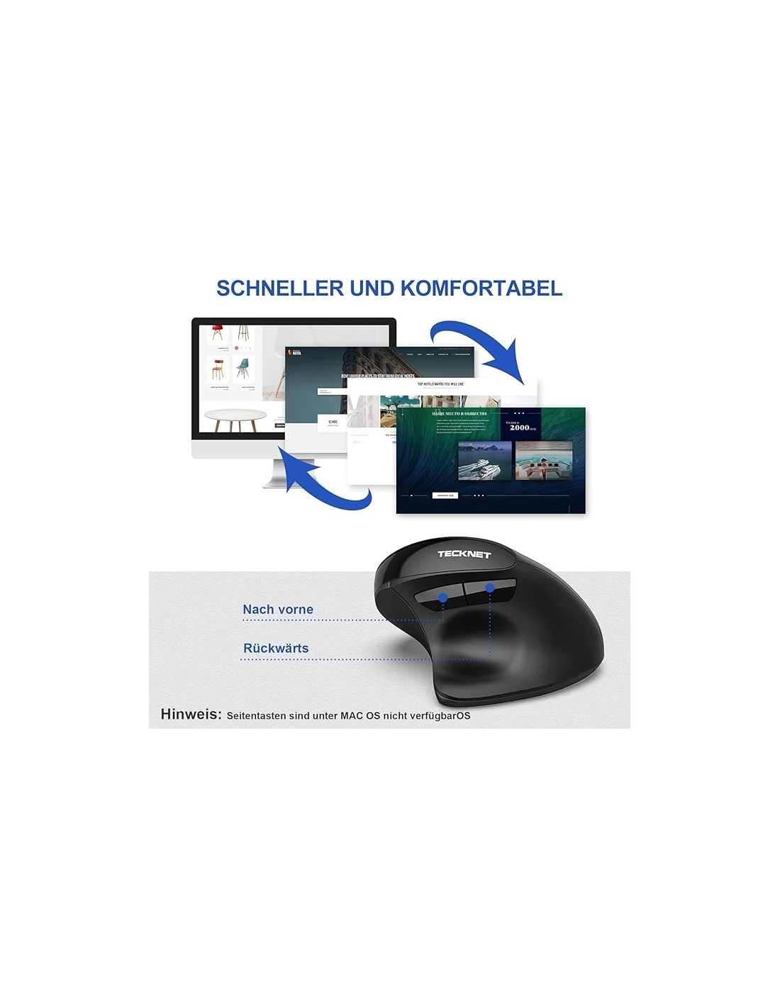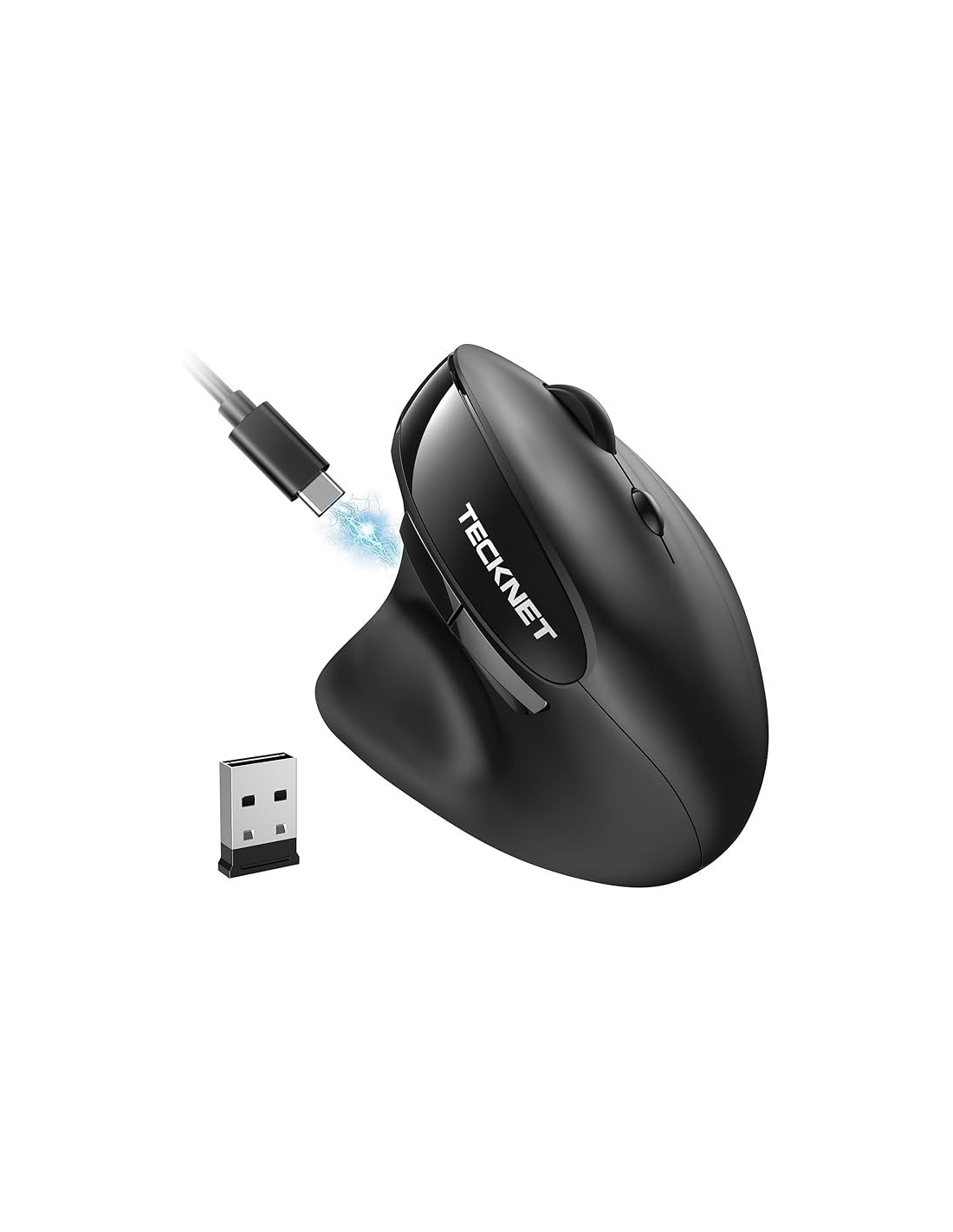 TECKNET Mouse ergonomico verticale senza fili, 2400 DPI ricaricabile senza fili, batteria ricaricabile, mouse wireless 2,4 G con 6 tasti, per laptop, desktop, PC, MacBook, nero