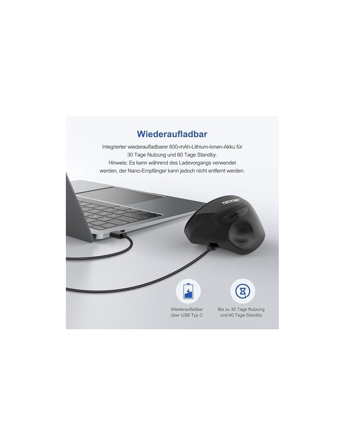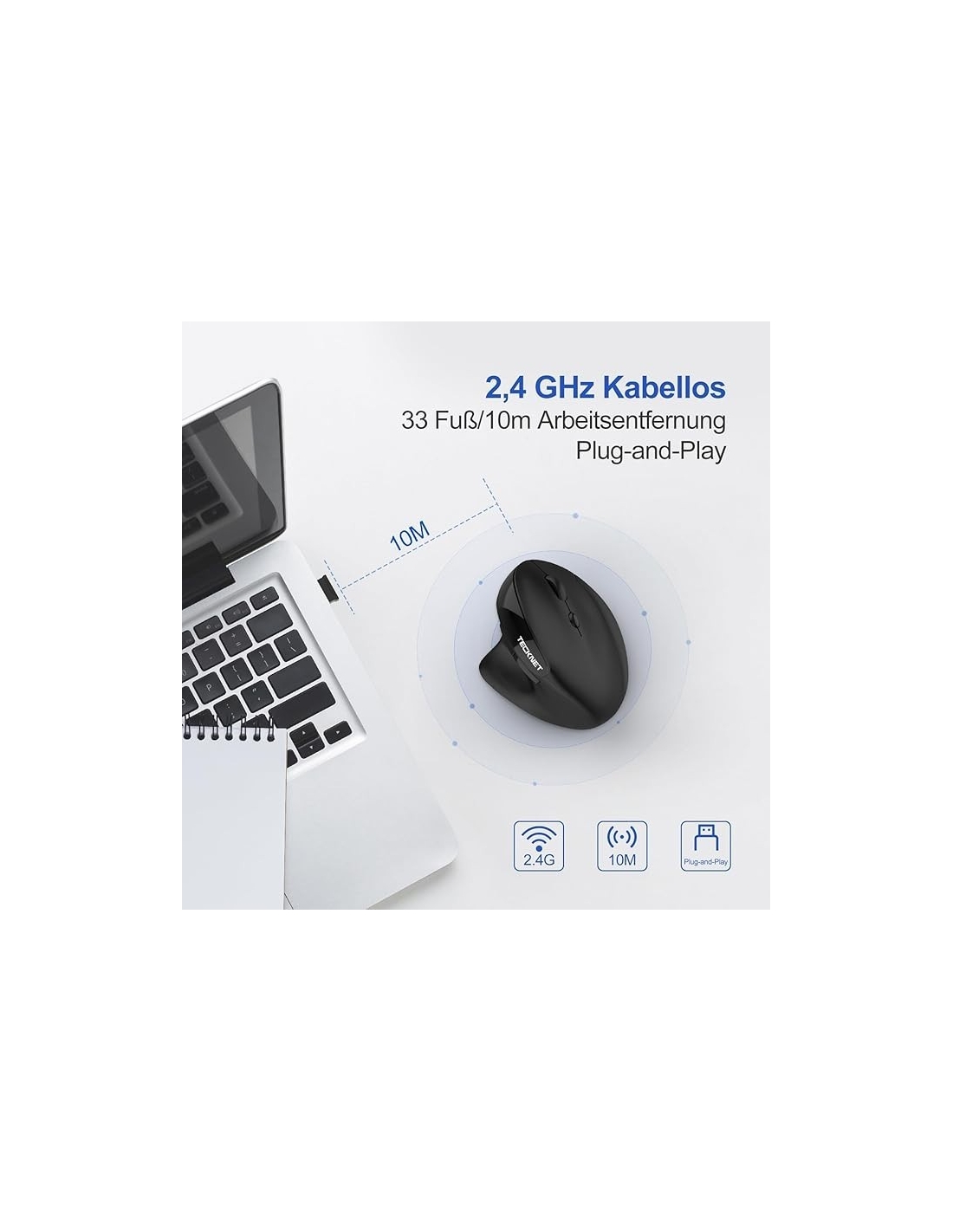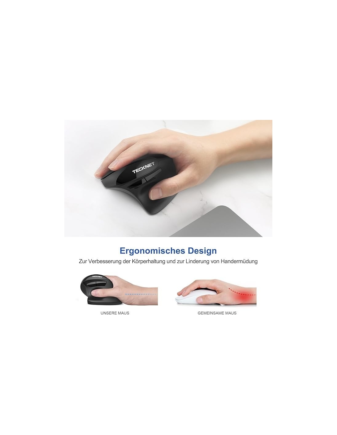TECKNET Mouse ergonomico verticale senza fili, 2400 DPI ricaricabile senza fili,
